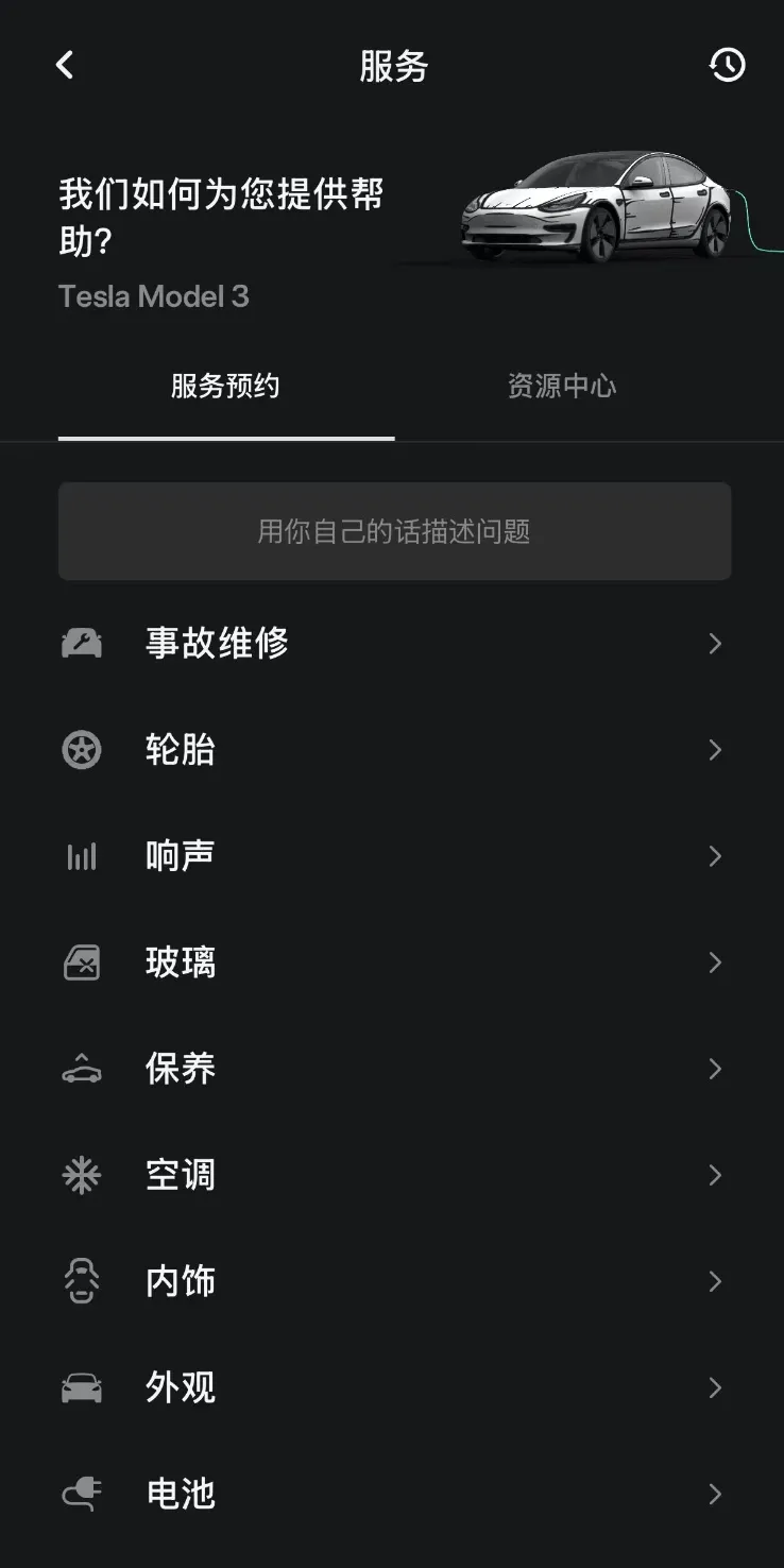 首先有一个超明显的功能,特哥好好体验了一下,体验感觉是真不错,那就是Tesla APP中服务界面大幅度升级,简直太好用了: