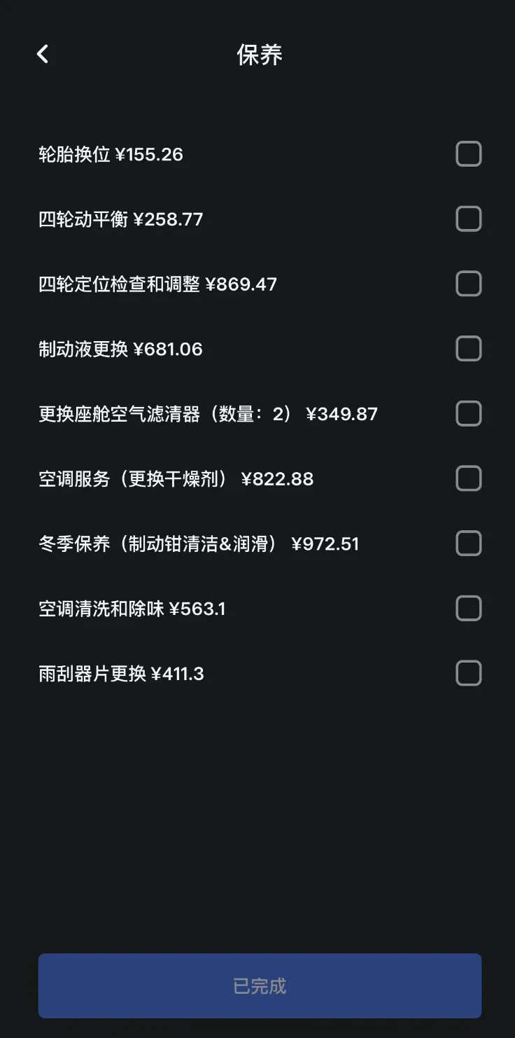 还有就是保养界面,各个保养项目的价格,都列出来了,让大家看到特斯拉各个保养项目的细节价格,更方便。