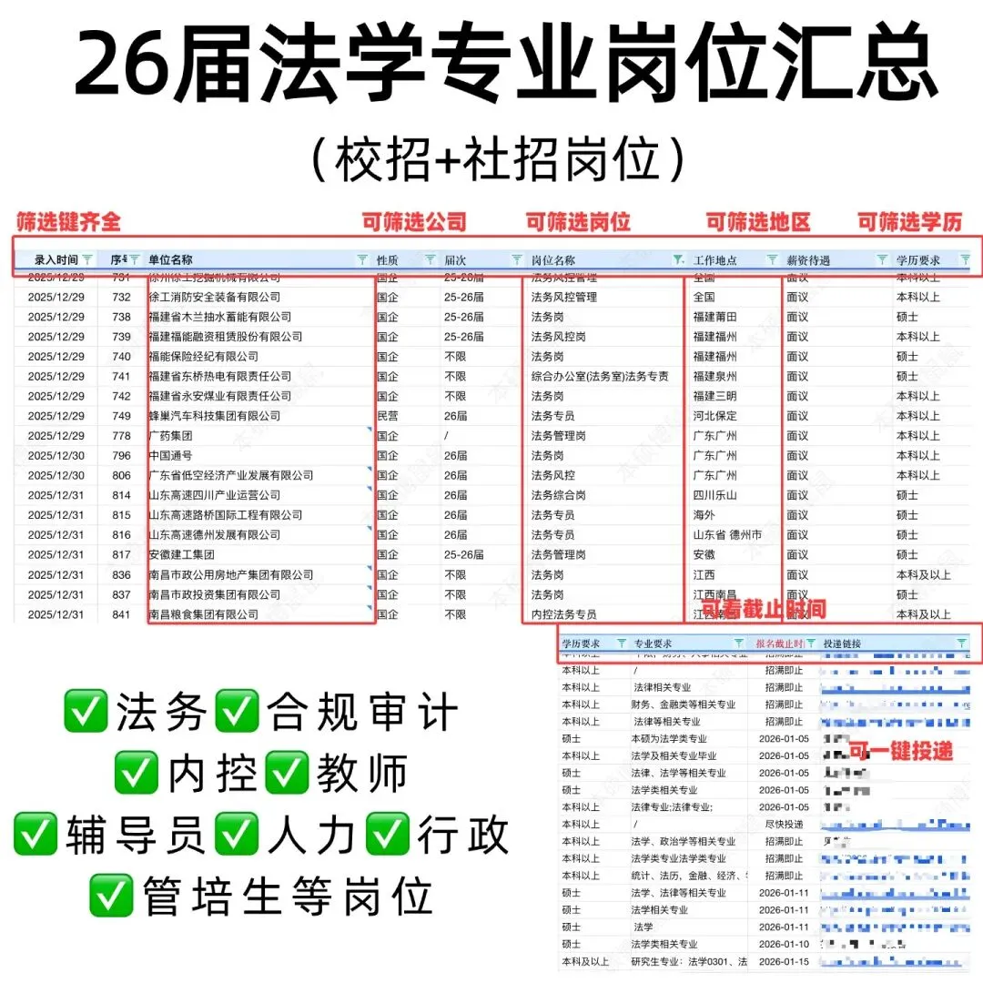 《26届法学专业岗位汇总表》