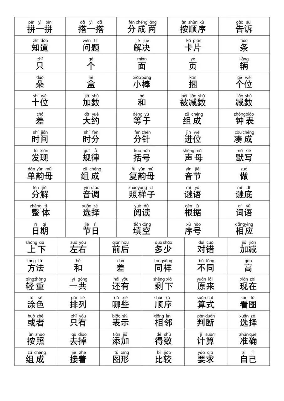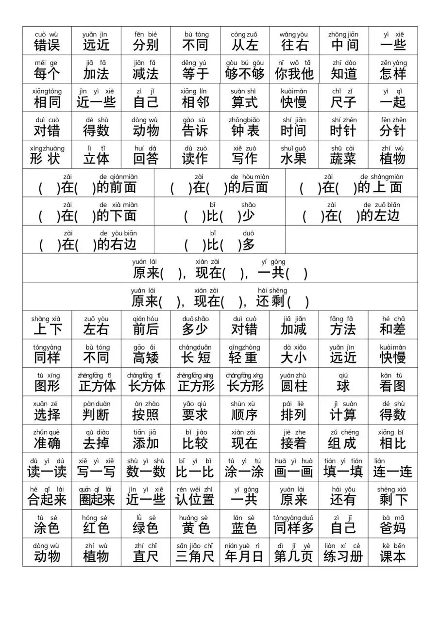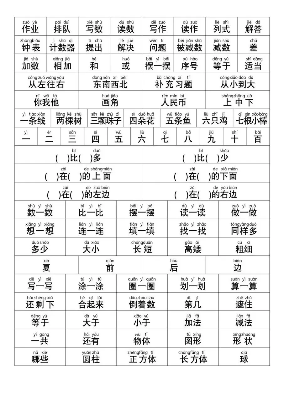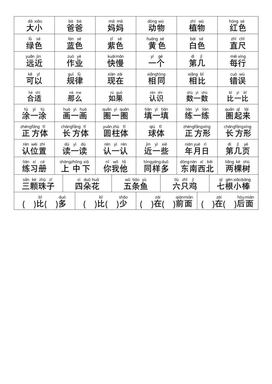 幼小衔接一年级数学常用字电子版