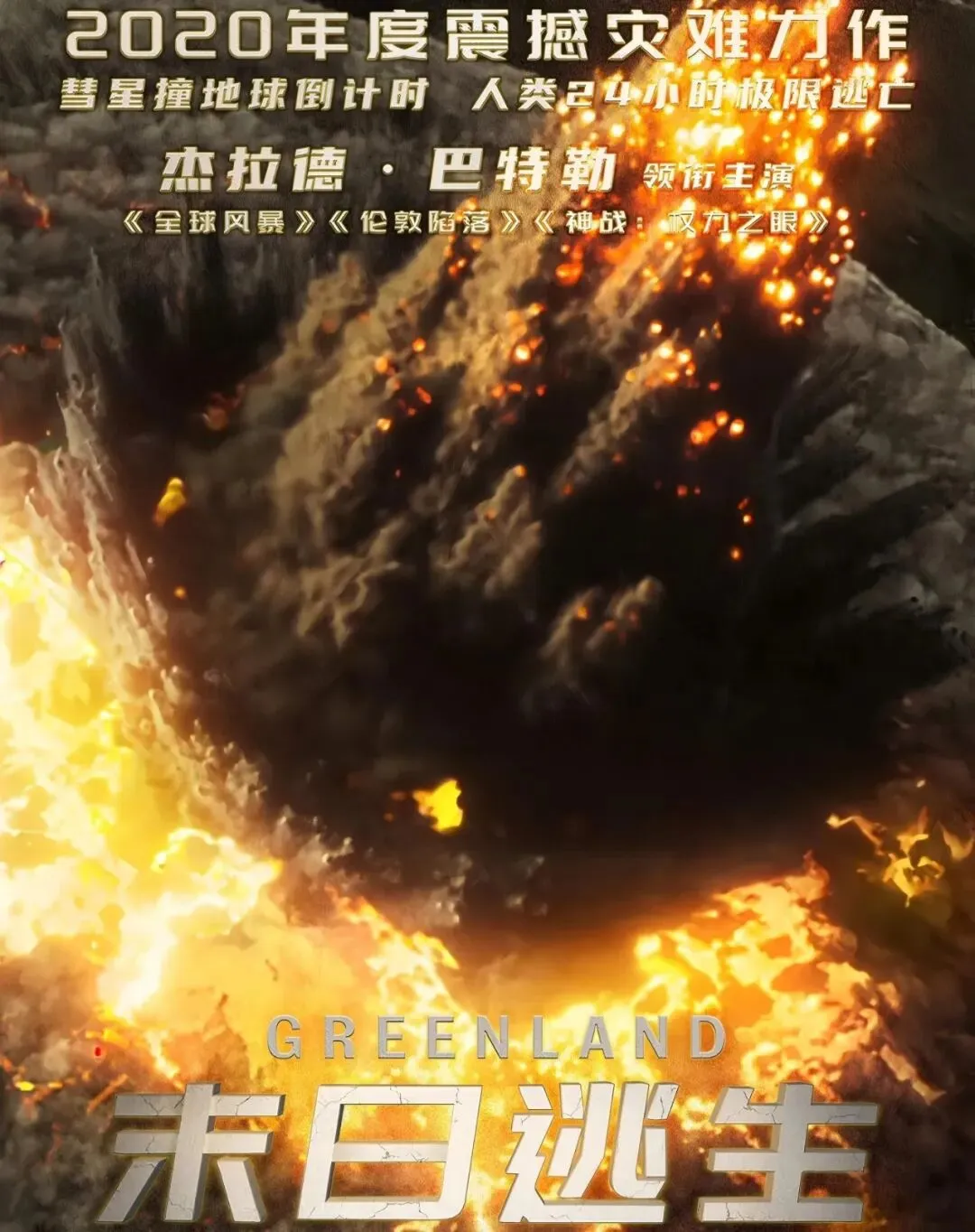由于宇宙中的两颗彗星正面撞击了地球,致使地表生态遭遇毁灭性打击,造成恶劣后果。全人类不得不躲藏在地堡中求得生存。身为科学家的约翰·加里蒂(杰拉德·巴特勒 饰)带着一家人劫后余生,幸存了下来。