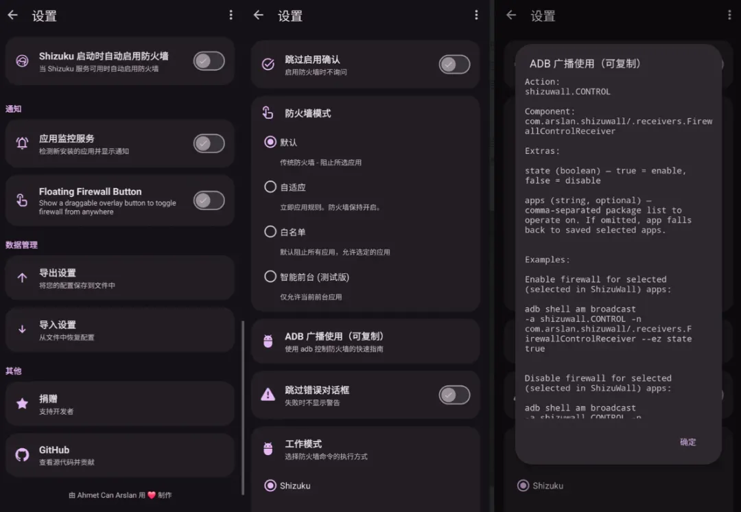 它借助 Shizuku 调用系统 Shell 命令,从系统层面控制应用是否联网,而不是拦截数据包。