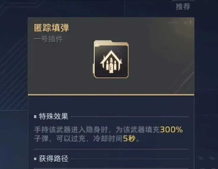 1. 武器金插搭配:一号位匿踪填弹,二号位命中储能,三号位重峦叠势,四号位蔓延。