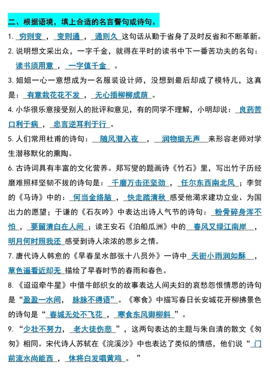 可下载丨26春六年级下册语文小升初期末必考知识点,电子版可打印