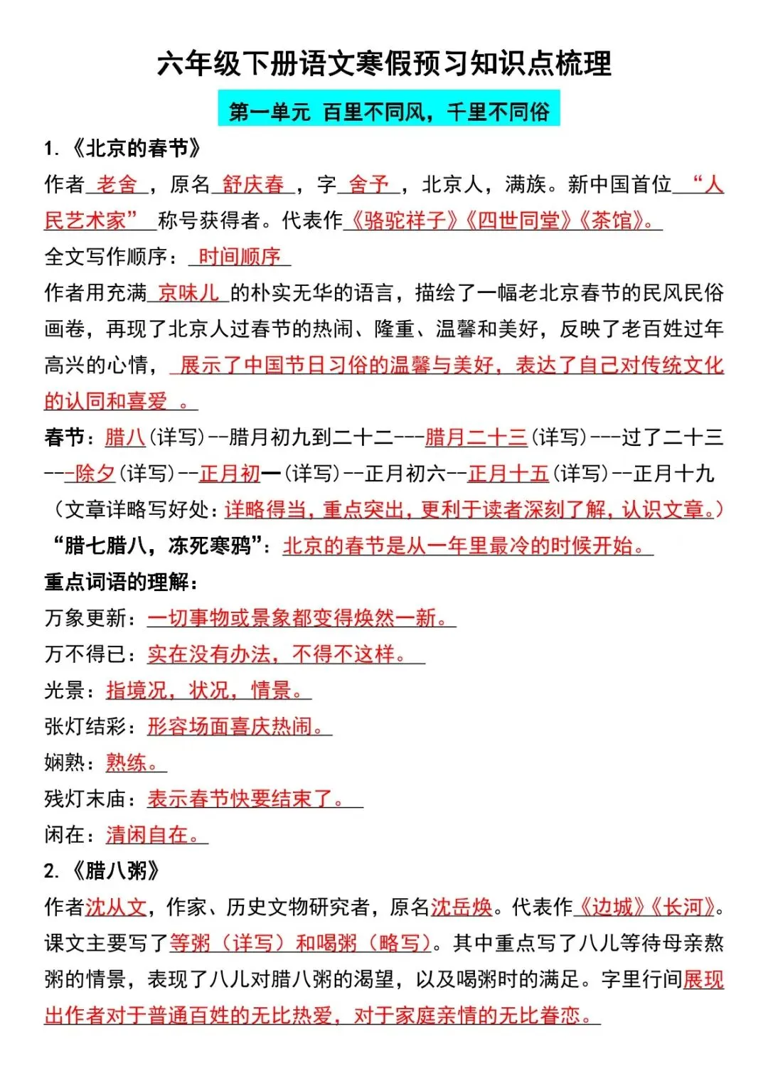 同步部编版六年级下册语文全册教材,紧扣小学期末统考、小升初语文核心考纲,系统梳理全册必考、必背、高频易错知识点,剔除冗余拓展内容,聚焦考点干货,按模块分类整理,重点内容加粗标注,可直接打印背诵,是六年级学生期末冲刺、小升初语文备考、查漏补缺的核心必备资料,一站式夯实语文基础,攻克考试重难点。