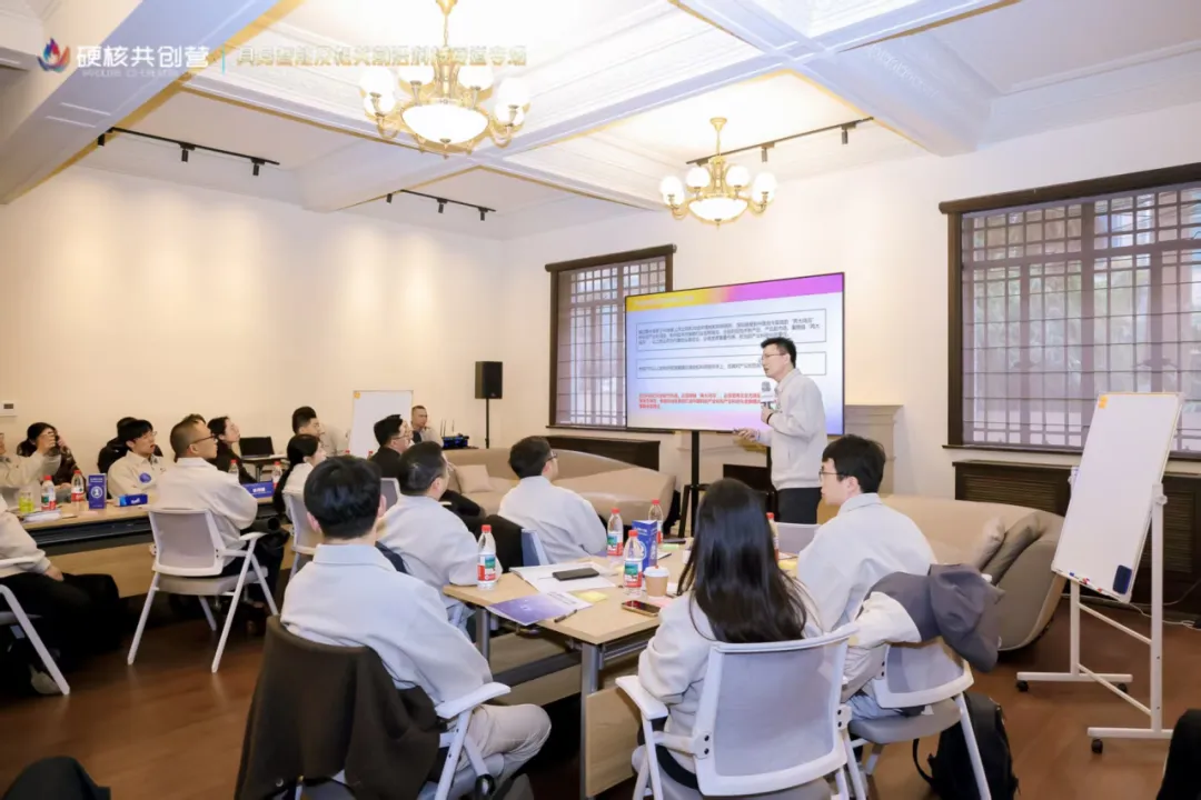 本次硬核共创营汇聚了产业与资本双端优质资源。华懋科技、歌尔股份、科沃斯、九号公司等近50家覆盖智能制造、新材料、高端装备等具身智能核心领域的上市公司高管齐聚;东方富海、蓝驰创投、英诺天使、险峰长青、容亿资本、小苗朗程等国内一线硬科技投资机构的合伙人及核心投资负责人参与深度对接。活动累计吸引70余个项目报名,经多轮沟通与严格筛选,最终26名种子学员脱颖而出。在开营仪式上,哈工轩辕智能科技有限公司创始人丁亮、中国科学院沈阳自动化研究所项目负责人何玉庆、浙江帕尔科新材料有限公司董事长朱颖作为学员代表,分别介绍了其在智能机器人操作系统、无人机技术、高端新材料领域的核心研发成果与产业化布局。