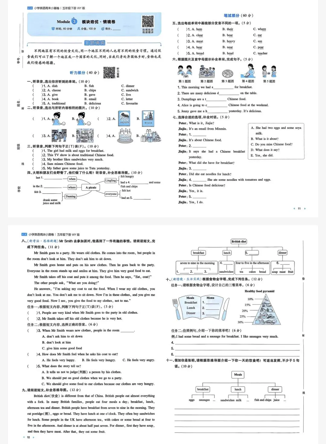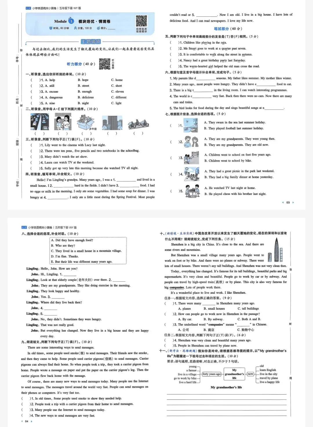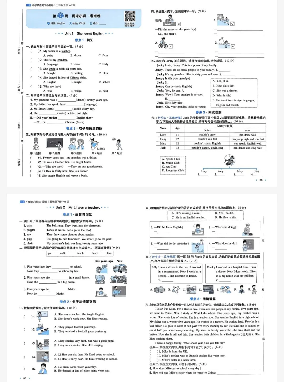 五年级下英语外研一本周末小测卷|可打印