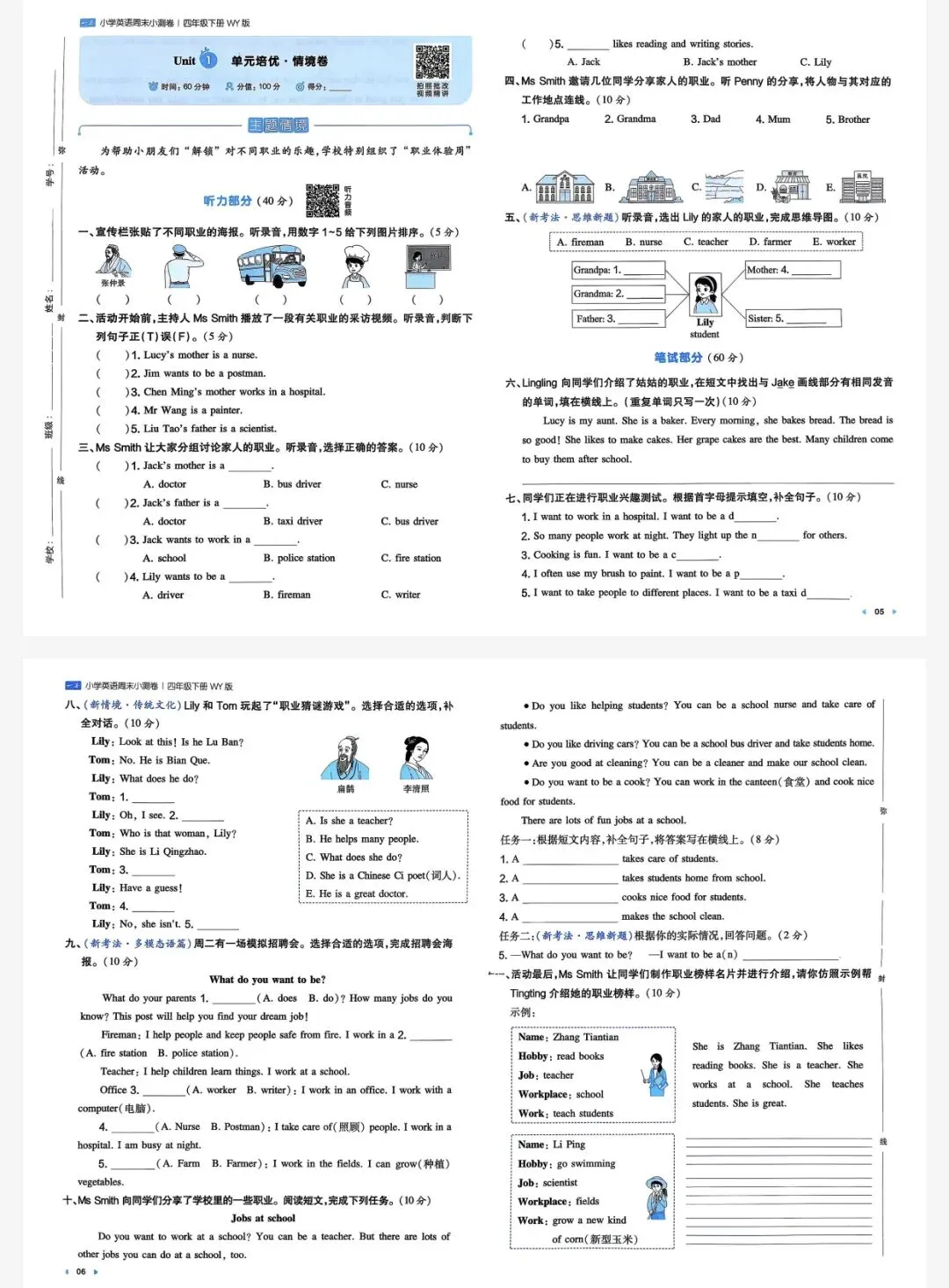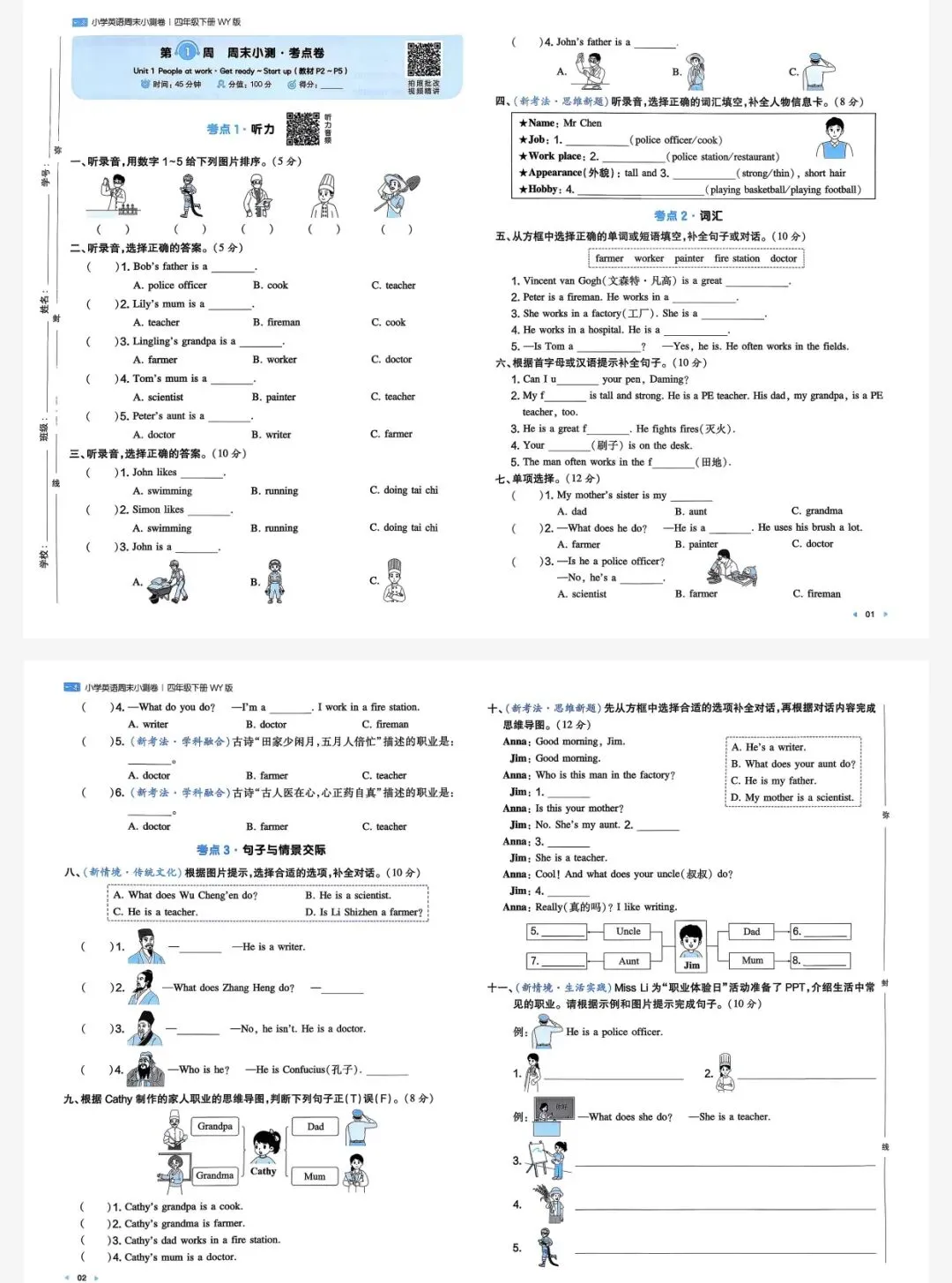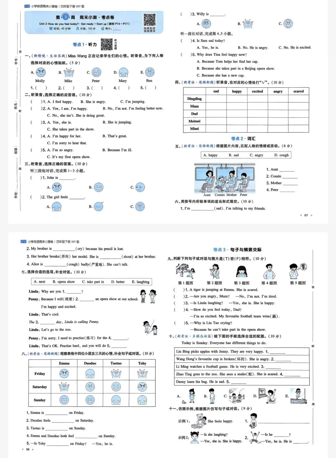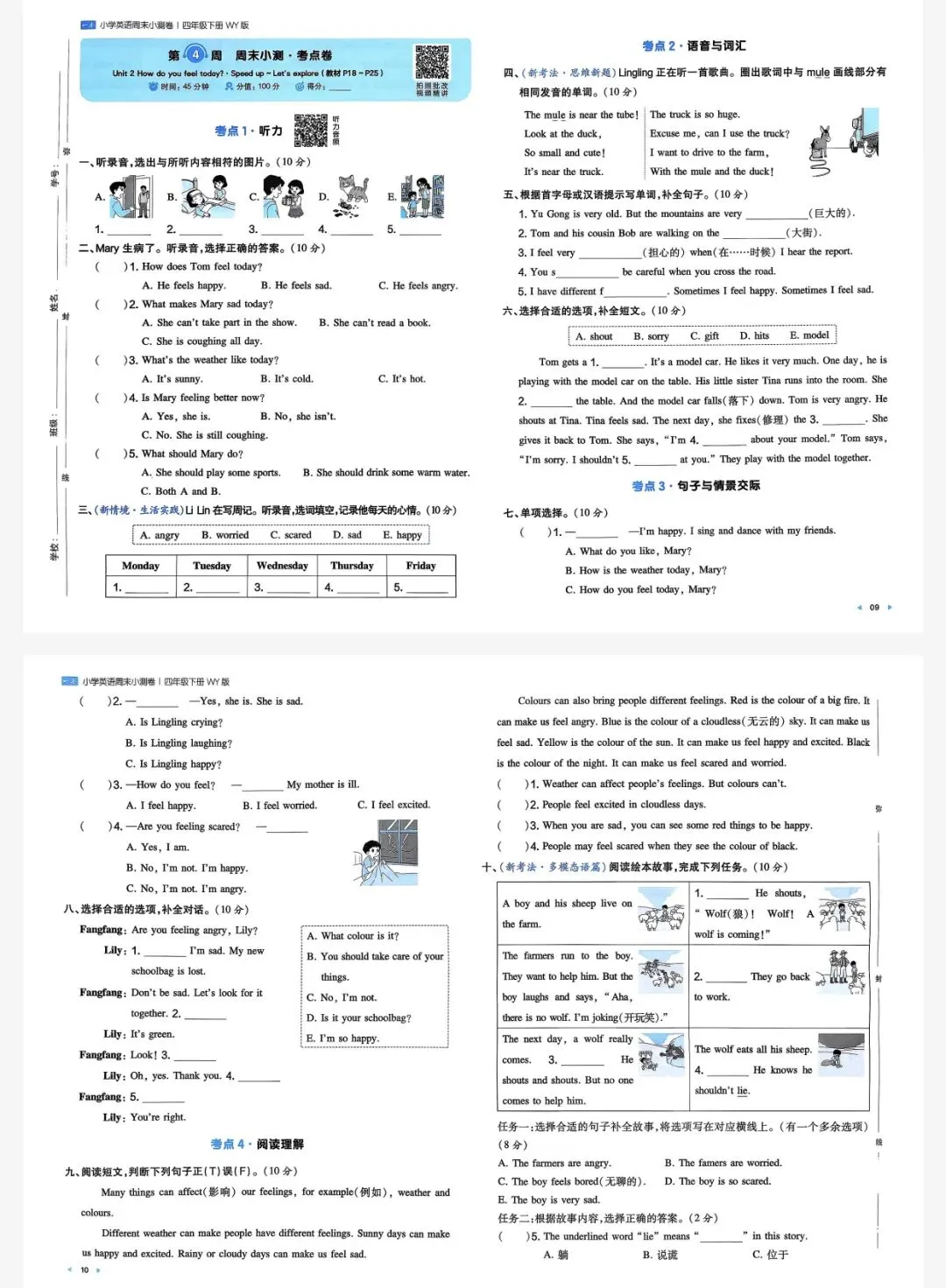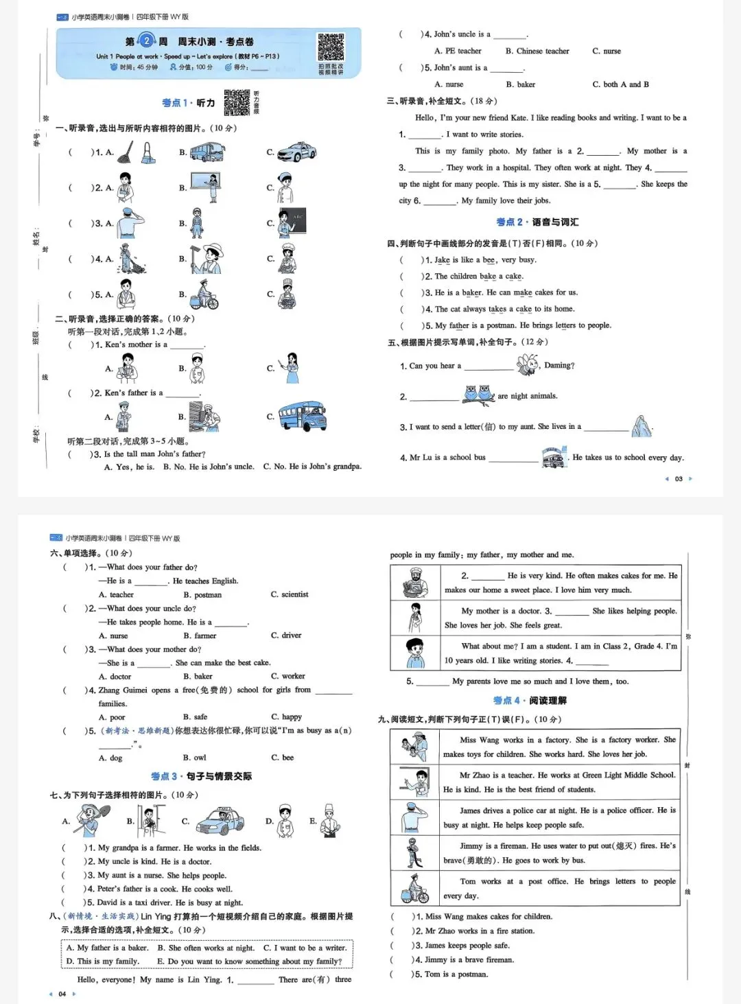 四年级下英语外研一本周末小测卷|可打印