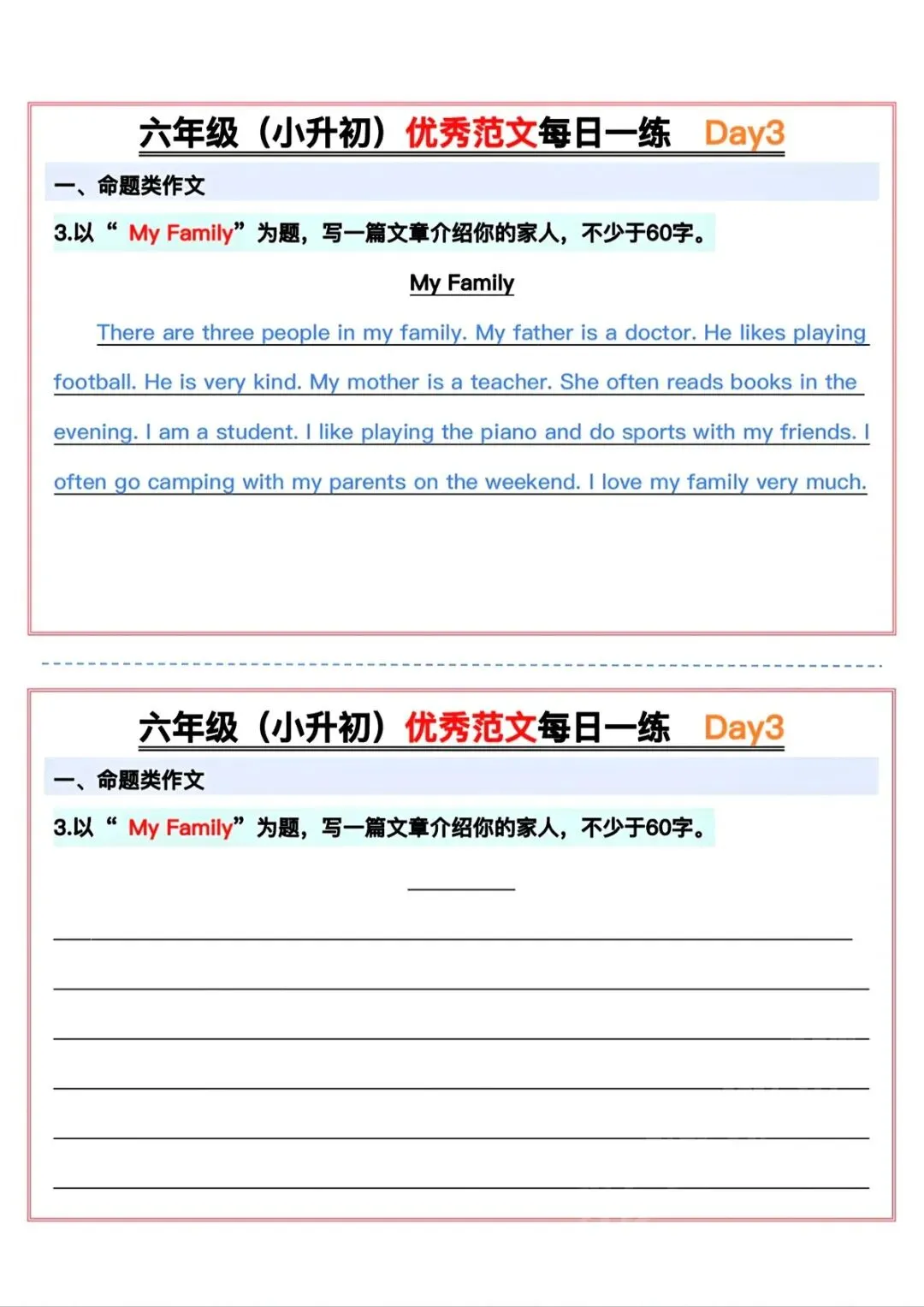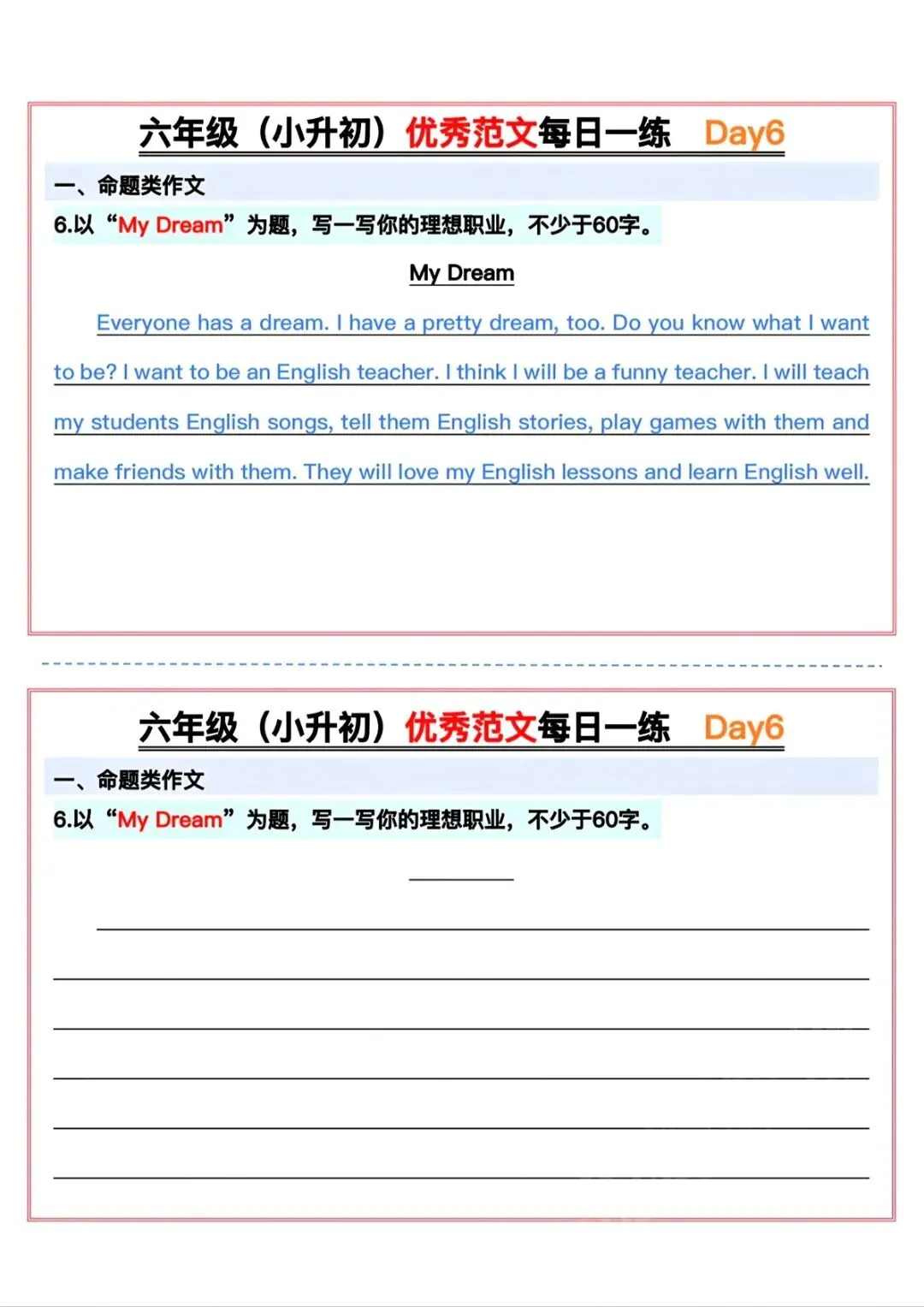 可下载丨26春六年级下册英语小升初优秀范文每日一练15天,电子版
