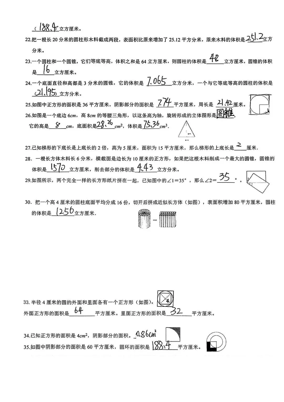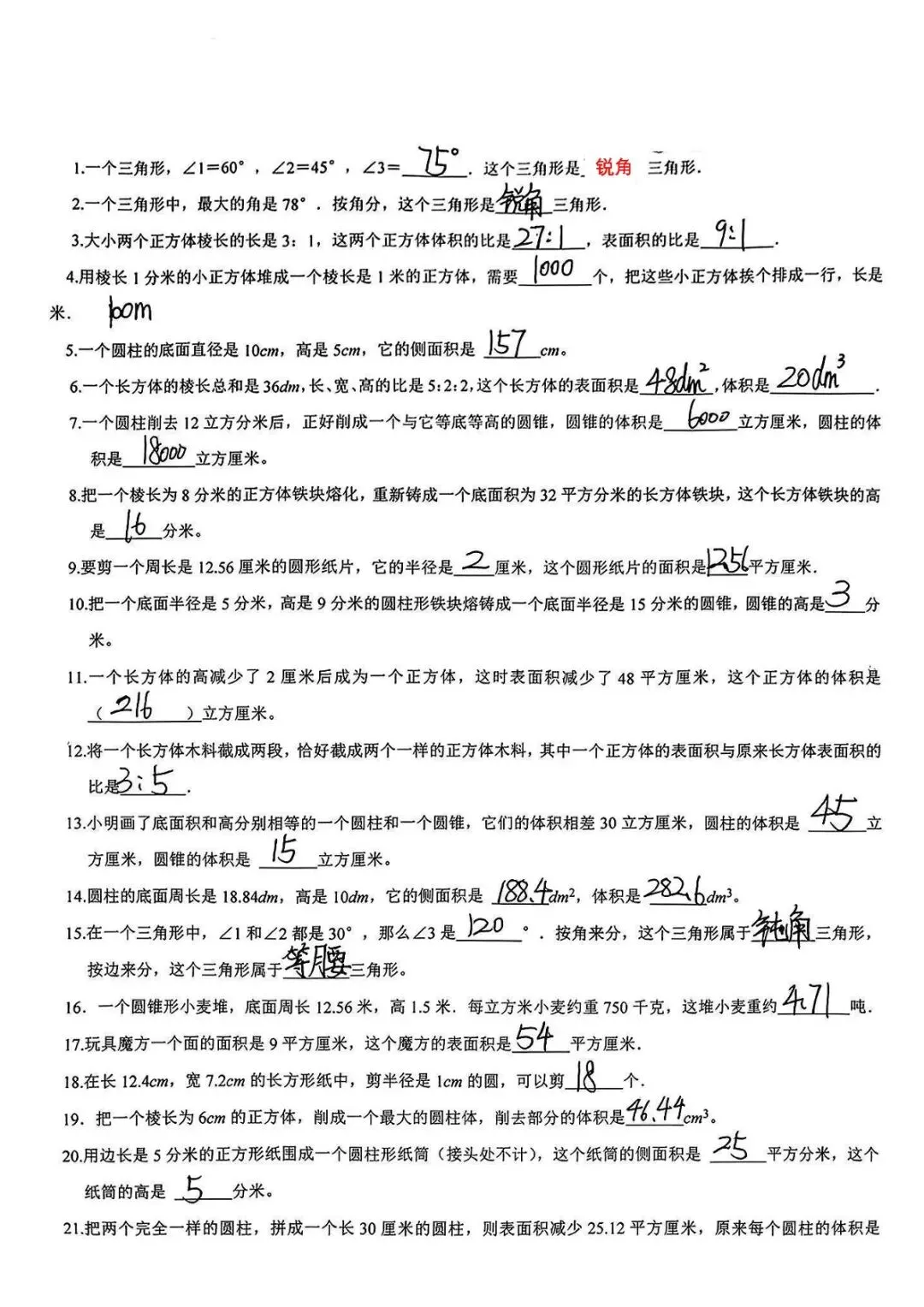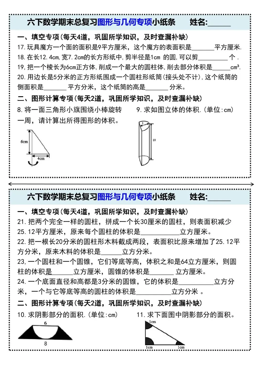 可下载丨26春六年级下册数学期末总复习图形与几何专项小纸条,电子版