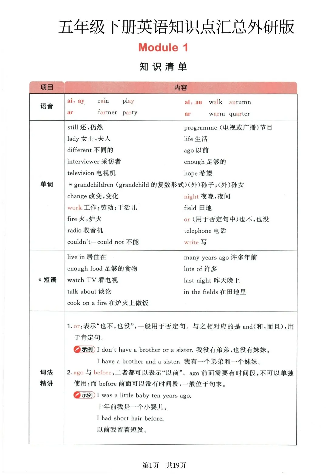 26年春新版五年级下册英语外研版全册知识点汇总,有完整电子版可打印