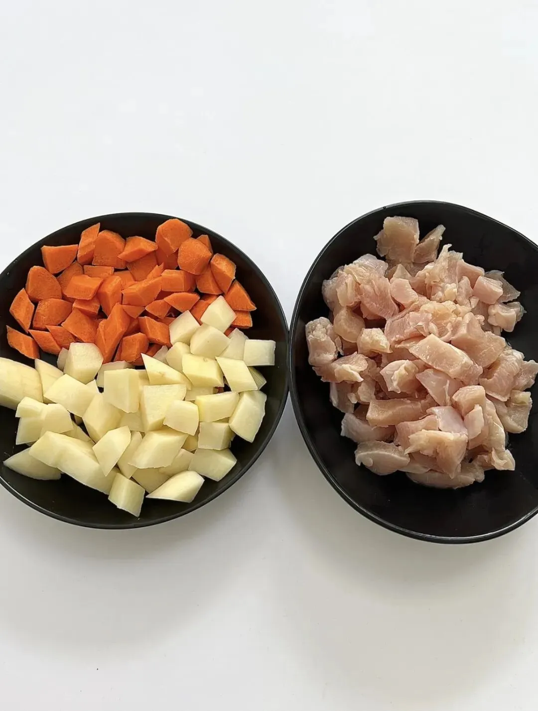 2⃣️准备配菜:士豆胡萝卜切丁。