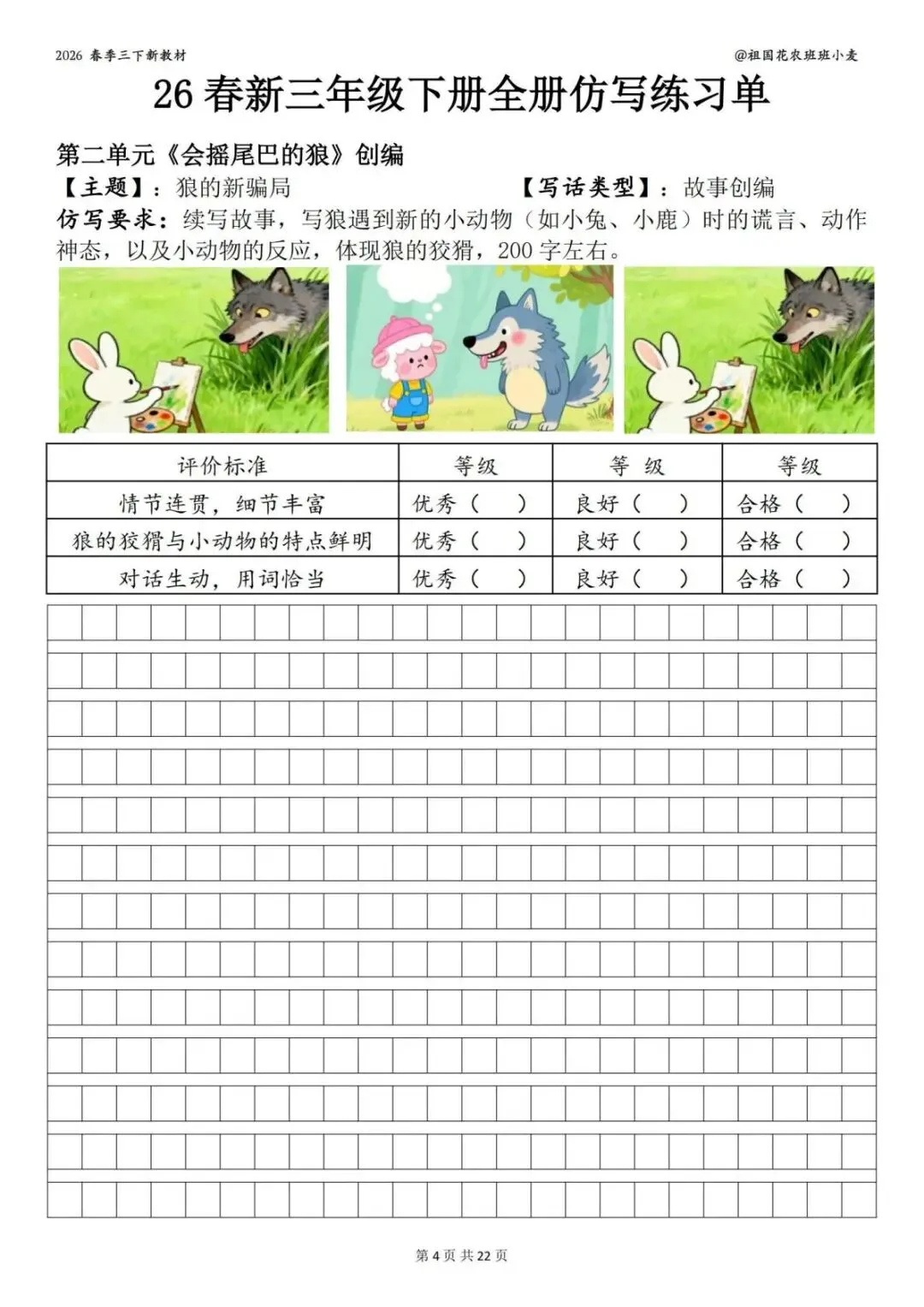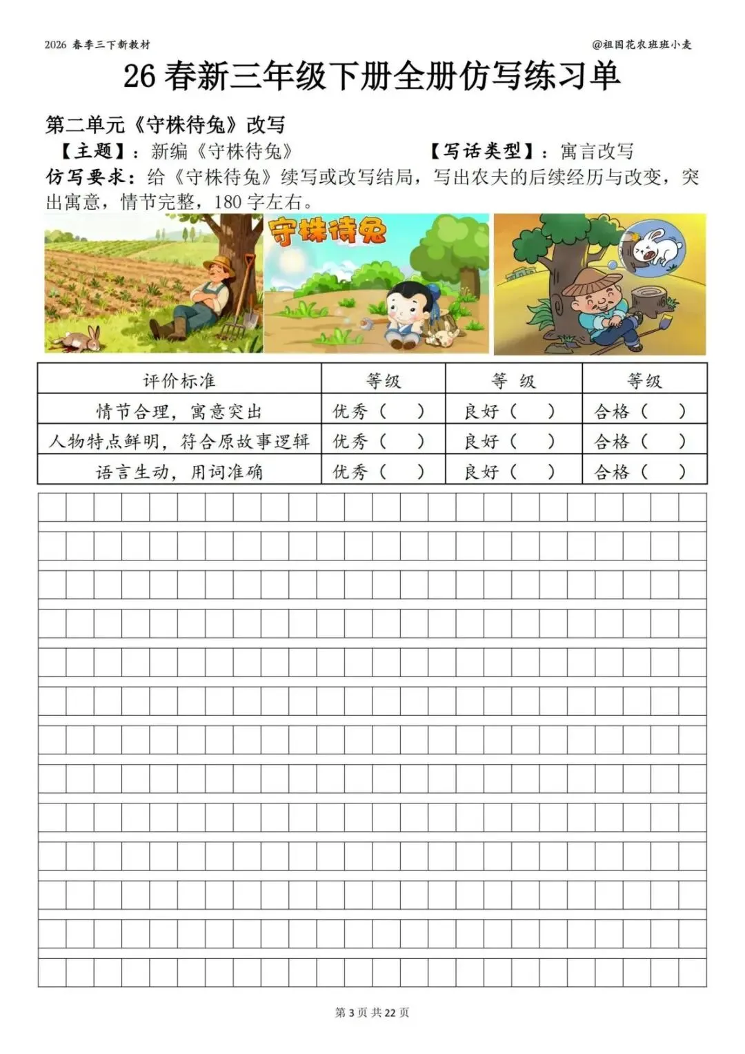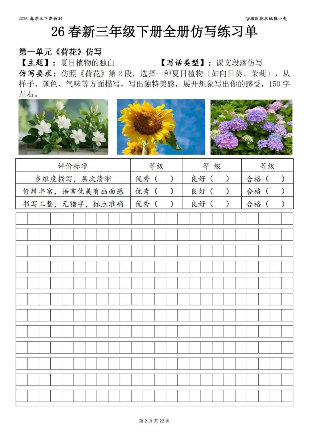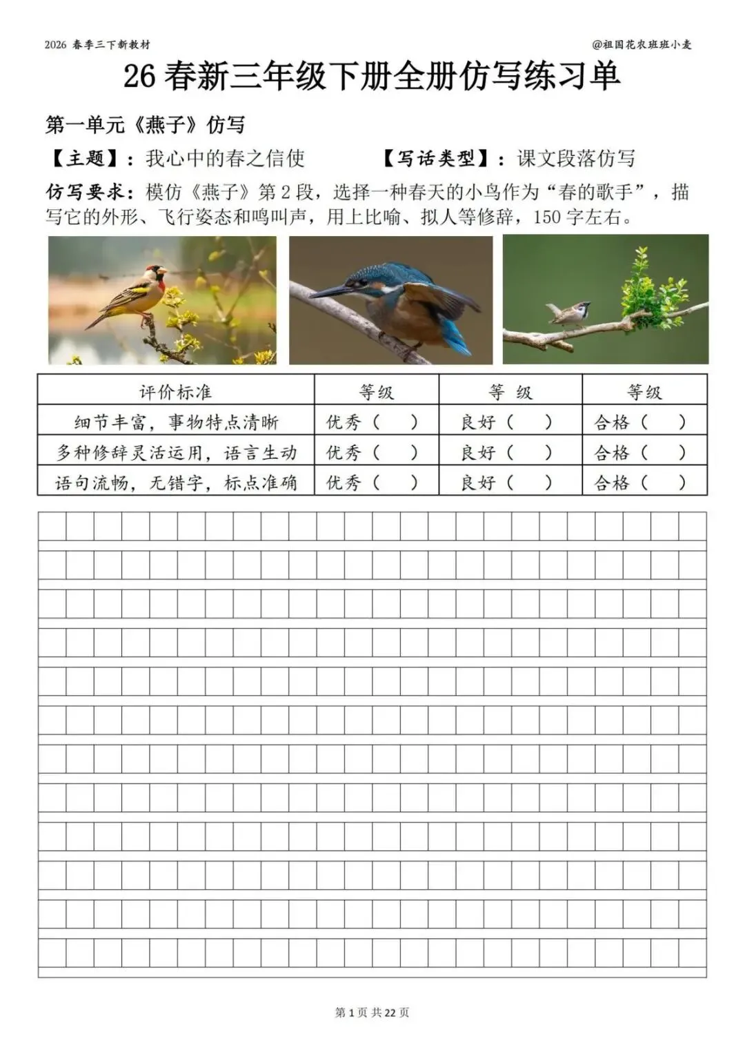 26春新三年级下册语文仿写练习单(完整电子版可打印)