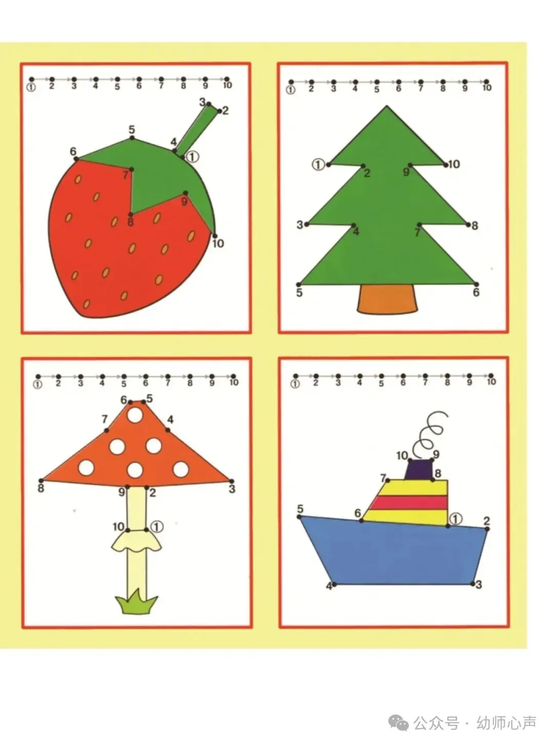 数字1-10连线与填色,连线图案小游戏,可打印