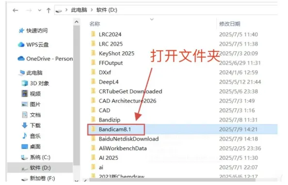 4、点击打开粘贴过来的【Bandicam】文件夹。