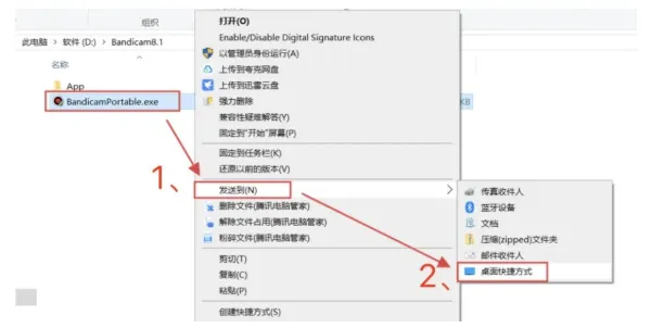 5、选中【BandicamPortable]】程序,鼠标右键选择发送到【桌面快捷方式】。