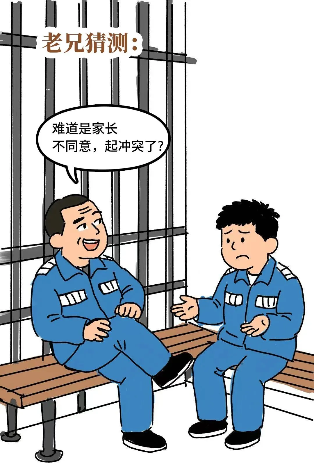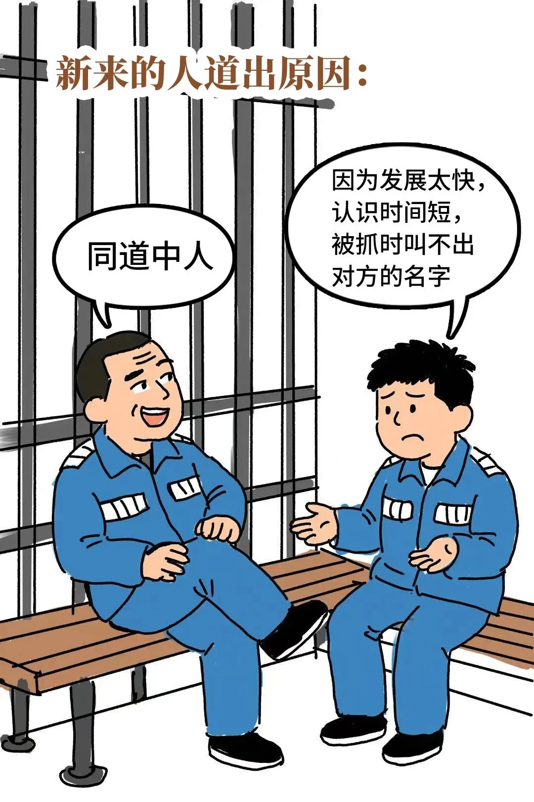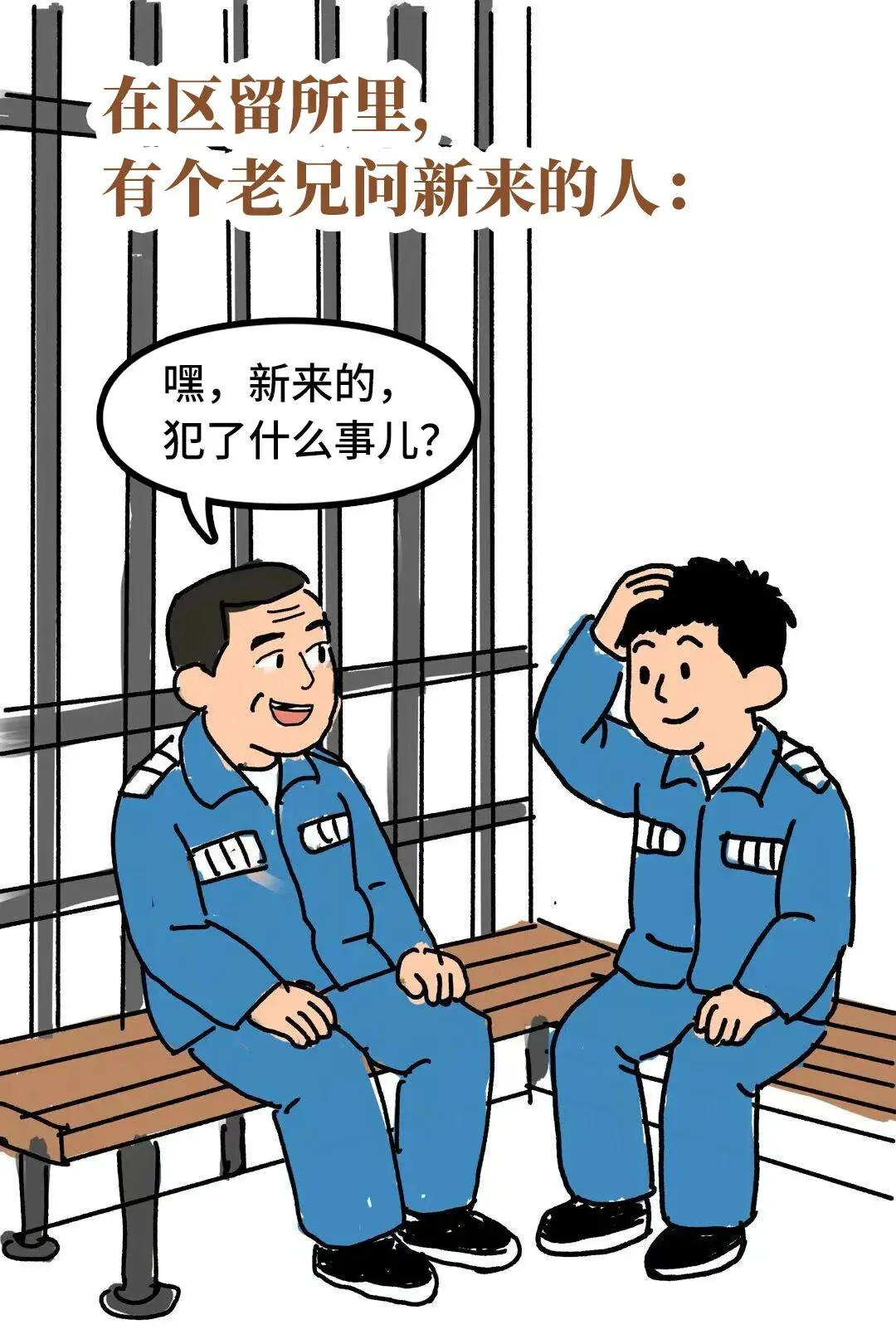 趣味漫画:拘留所里,老犯人问新来的犯了啥事,新人说因爱情.老犯调侃莫非霸王硬上弓,新人叹道:发展太快,被抓了.