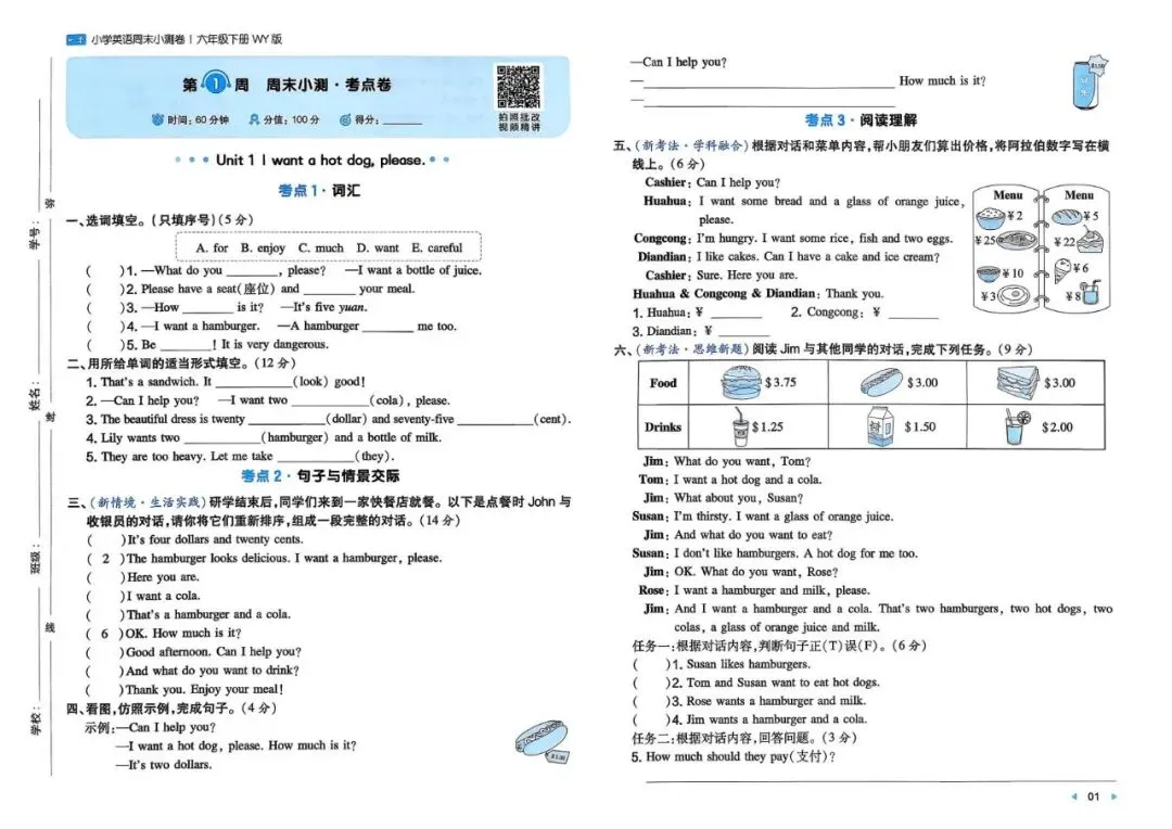 专项练习|26年春六年级下册英语外研版周末测试卷,电子版可打印