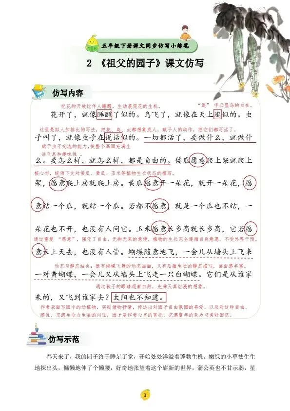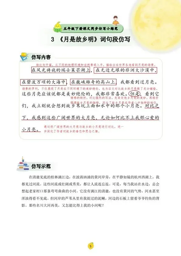 五年级下册语文仿写小练笔40篇(完整电子版可打印)