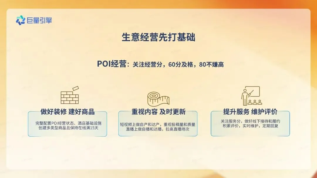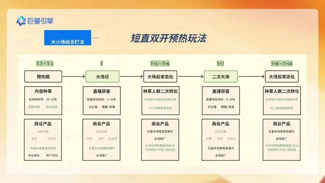 组合玩法强调生意经营需打好基础,包括完善POI信息、丰富商品、持续产出优质内容(短视频与直播)并维护服务评价。流量运营需统筹“内容”、“交易”与“广告”三大流量池,其中搜索与直播是核心交易GMV来源。投放策略应结合商家阶段:直播投放可通过深转与浅转目标组合,配合“全域推广”等工具,有效提升GMV并撬动自然流量;短视频布局需提升“种草力”,通过自产与达人内容矩阵,并利用巨量本地推加热放大效果;搜索场景可搭配“团购品专”实现品牌拦截与转化。最终通过短视频、直播与搜索的组合投放,实现营销效果最大化。