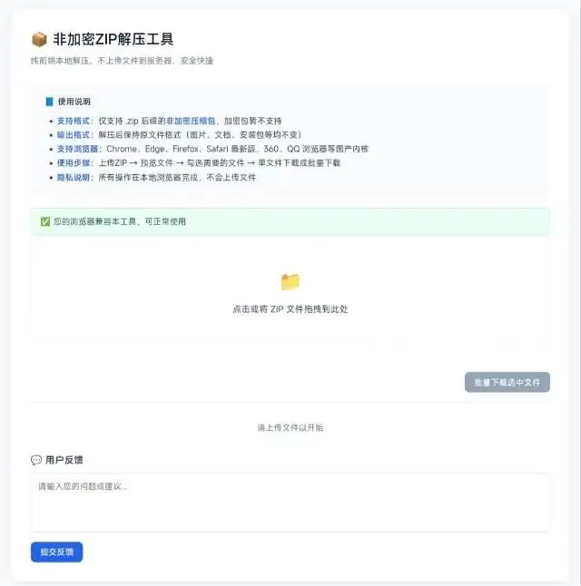 成果已放在网站https://atool.ct.ws/unzip.html上,欢迎各位使用!