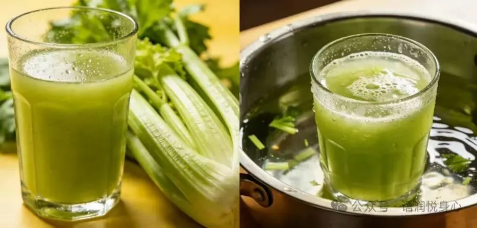 注意:如果是脾胃寒凉,可以西芹汁隔温水(50-60°)的水热一下。