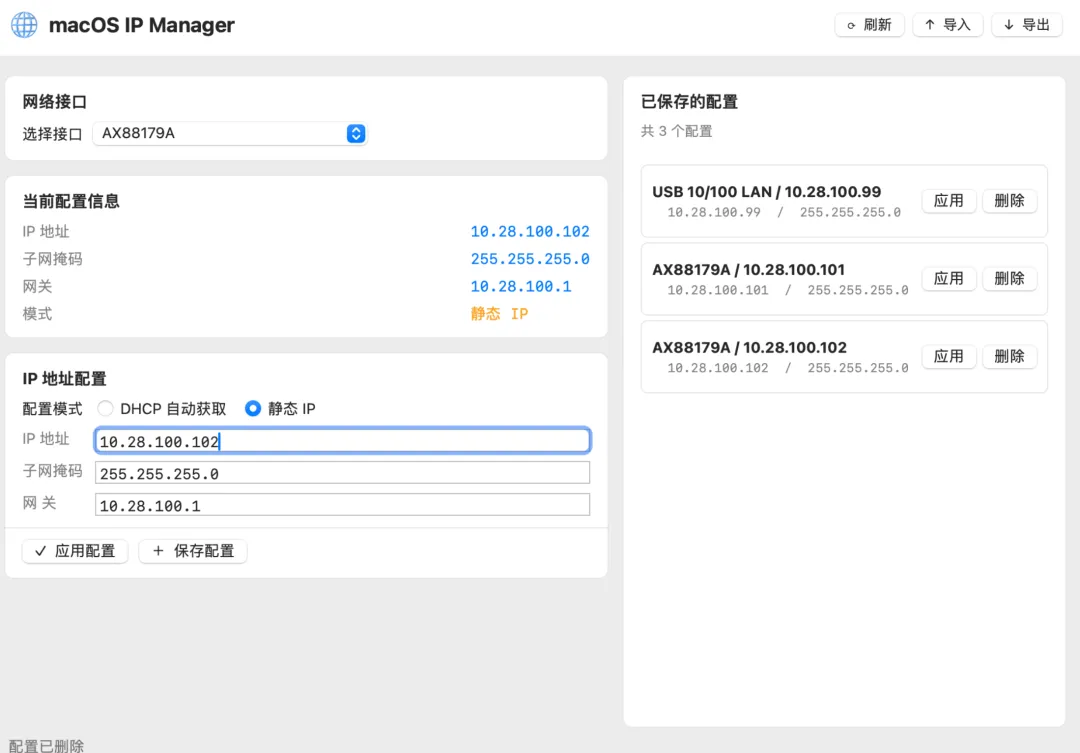 我也是全网搜了一圈,给大家淘到了一个好用的Mac版IP工具,支持一键导入和导出,可以保存历史的地址。