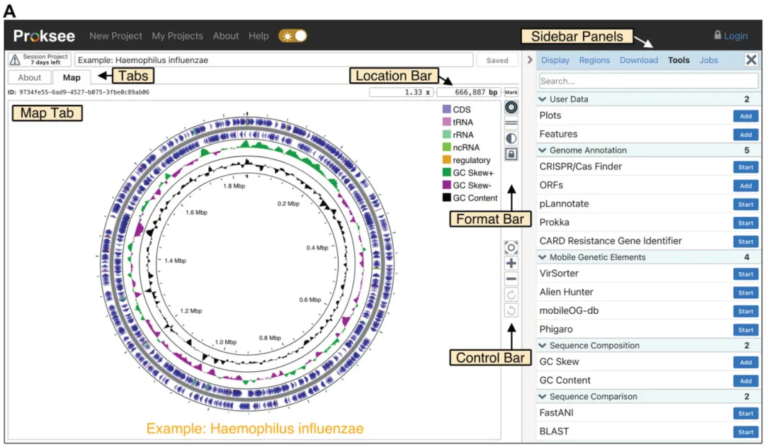 为降低使用门槛,我们开发了Proksee:一个用于细菌基因组组装、注释、分析和可视化的网络服务器。Proksee设计简洁,但功能强大,即使新手也能生成并分析细菌基因组。本文描述其架构与功能,并通过案例展示其能力。