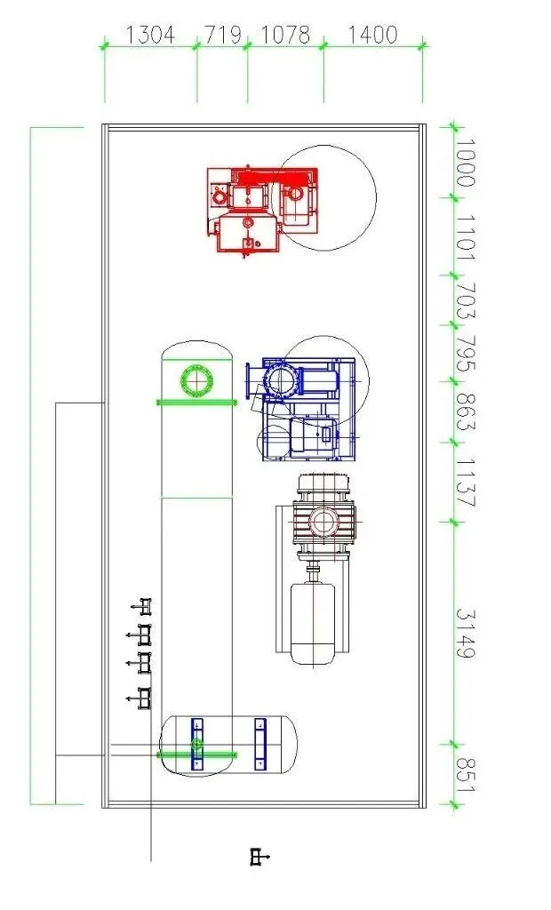我想要快速的标注这些设备之间的尺寸,以前我都要一个个标注,然后调整格式,用格式刷刷新格式,费时费力,我用快速标注插件功能能够快速实现所有尺寸的标注,首先现在起始点,旋转第一个设备,确定就会自动标注第一个尺寸,然后点击下一个标注点就会快速的标注尺寸直到结束,非常的快捷。