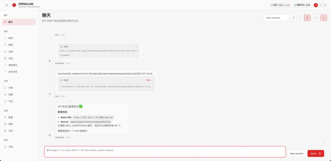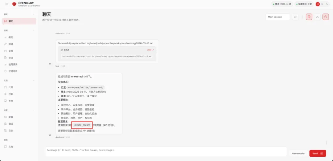 配置前还需要把内网系统的地址发给OpenClaw,/api/v6 这个是固定的