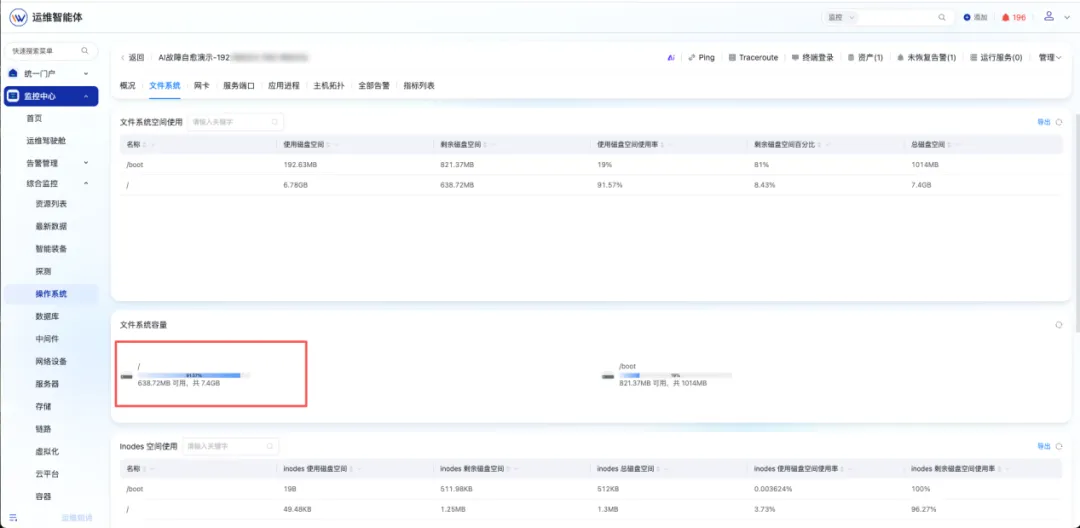 磁盘告警通知:192.168.x.xx上/分区磁盘空间使用率高于90%