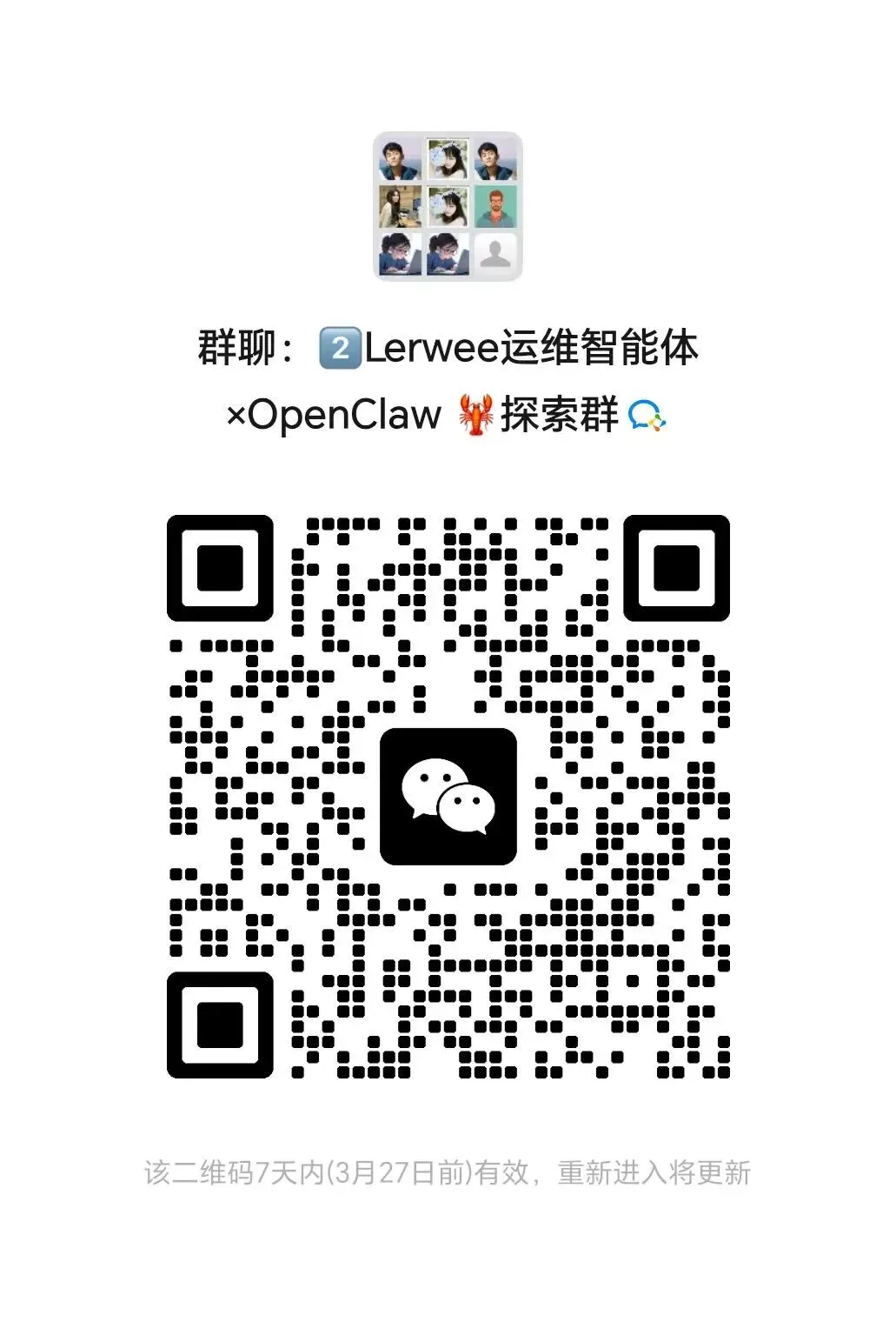Lerwee 运维智能体依托智能监控、根因分析等能力,打造出运维的「认知大脑」,提供精准可靠的决策支撑;OpenClaw 则是能真正落地执行的 AI 智能体,可把自然语言指令直接变成真实运维操作,成为 AI 落地的「数字之手」。二者深度融合——LerweeClaw,彻底打破工具间的协作壁垒,实现从发现问题→分析问题→解决问题的全流程自动化闭环,真正重构运维效率,解放运维人力!