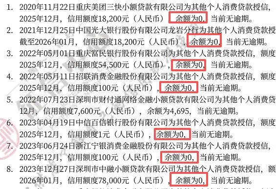 不查征信,遗漏“余额为0”账户:不清楚哪些网贷机构在征信上留了记录,导致账户数越积越多; -