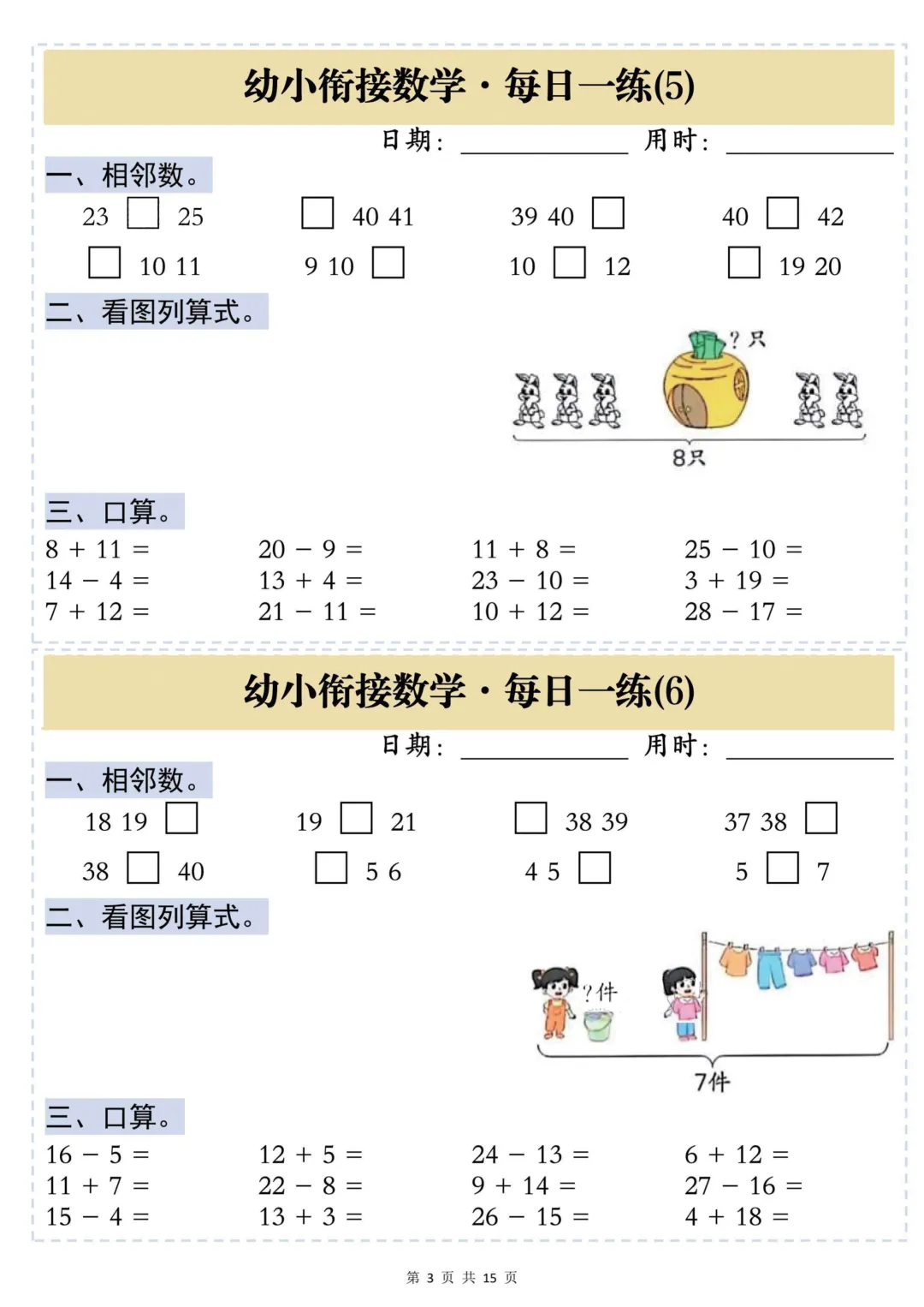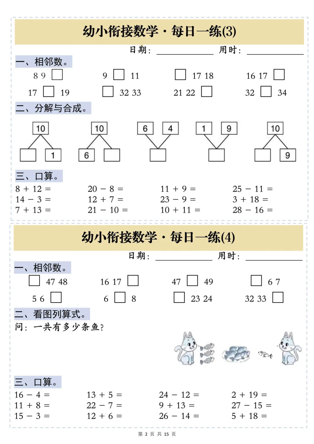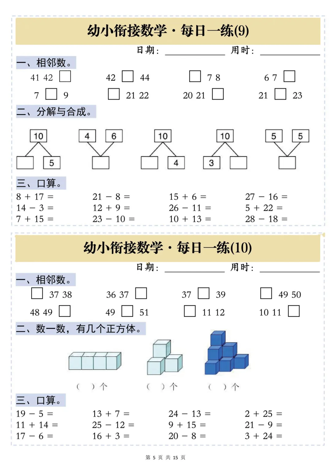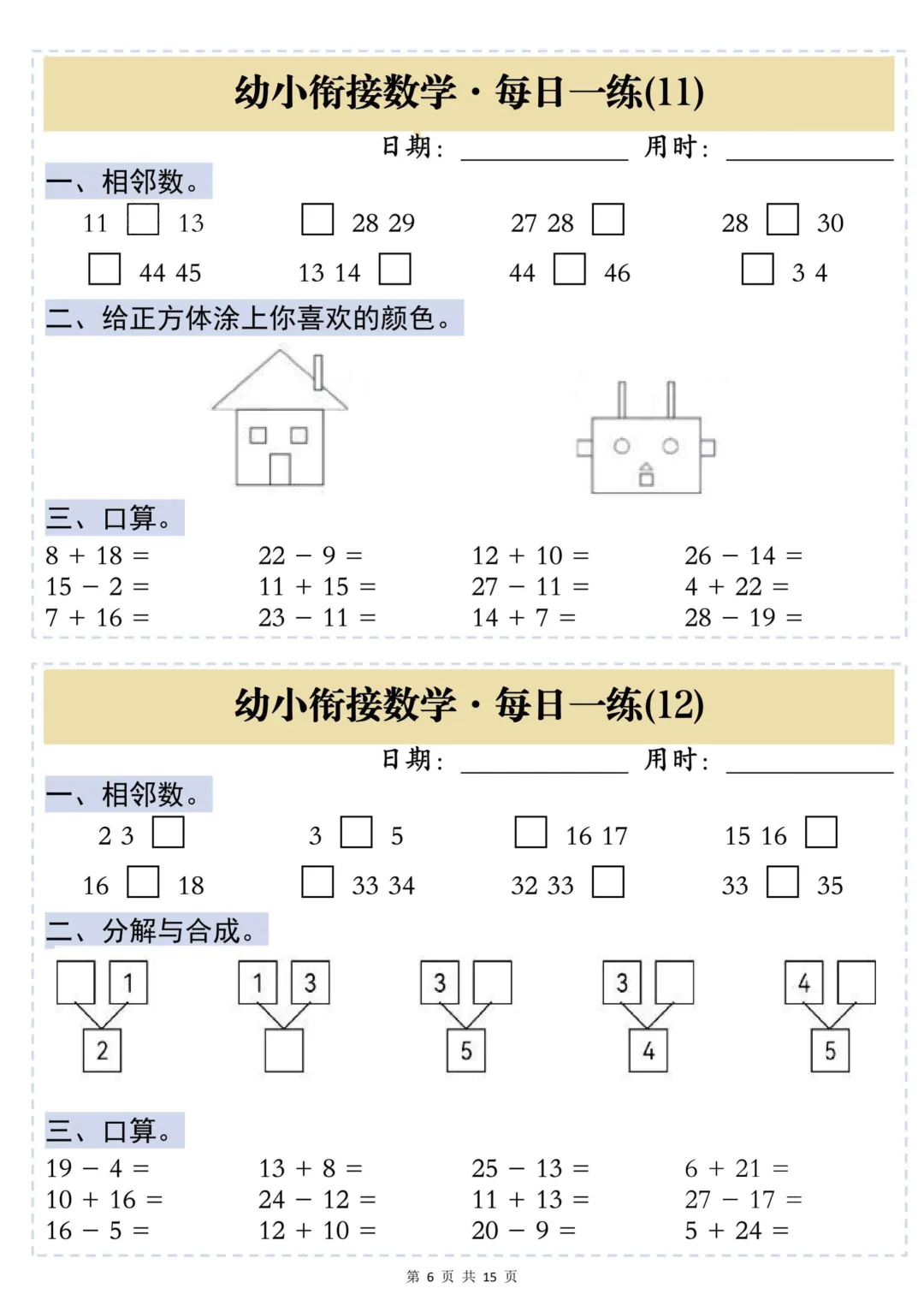 幼小衔接数学每日一练来啦,共30天,电子版可下载。需要的家长可以打印出来,每天练一练,为升一年级打好基础。(温馨提示:文末有资料获取方式)