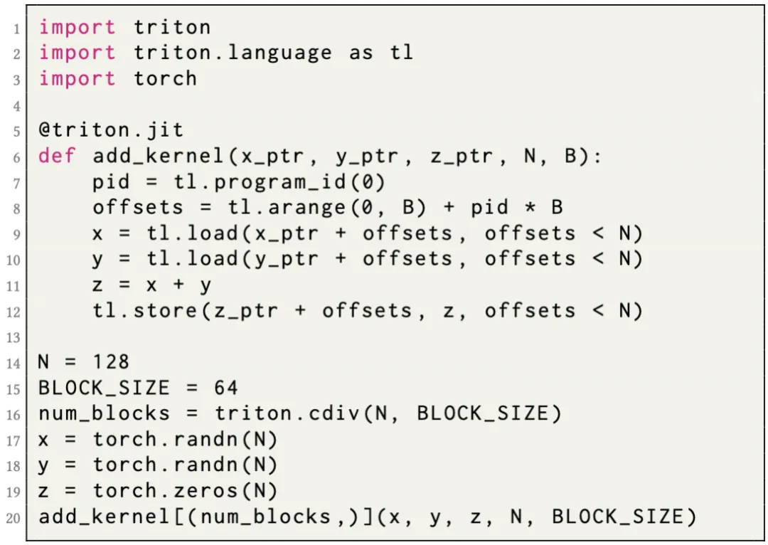 🥝Triton 也提供了对 GPU 的高层抽象,使用GPU的能力。Triton GPU 函数使用了几乎标准的 Python 语法,比较容易学习。