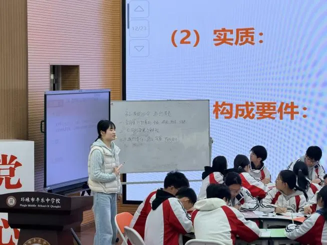 植材华老师以“合同履行的准则”“违约担责的边界”“契约精神的引领”三个议题为主线,以游泳馆案为情境,组织学生开展“法律医生”角色扮演,从五维责任角度分析违约后果,辨析不可抗力免责。通过层层设问——“法律的作用是什么?”“赔钱等于诚信吗?”“无诚信社会将如何?”——引导学生领悟“法律是底线,诚信是道德高线”的法治精神。整堂课案例新颖,价值引领自然有力,将法治意识与诚信品格培育融为一体。