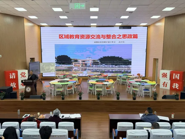 高守良老师作题为《城乡教育资源交流与整合之思政篇》的专题报告。高守良老师基于成都市“常青树计划”工作室的实践,系统阐述区域教育协同发展的理念与路径。报告回顾金邛教育交流12至18年的发展历程,提出重新开启金邛、青邛教育交流新篇章,推动邛崃市内、成邛之间以及成渝经济区、成都都市圈乃至对口支援区域的教育资源整合。其核心逻辑是从单向帮扶转向双向互助,追求交流的精准度与可持续性,为区域教育协同发展提供了清晰的思政视角与实践路径。