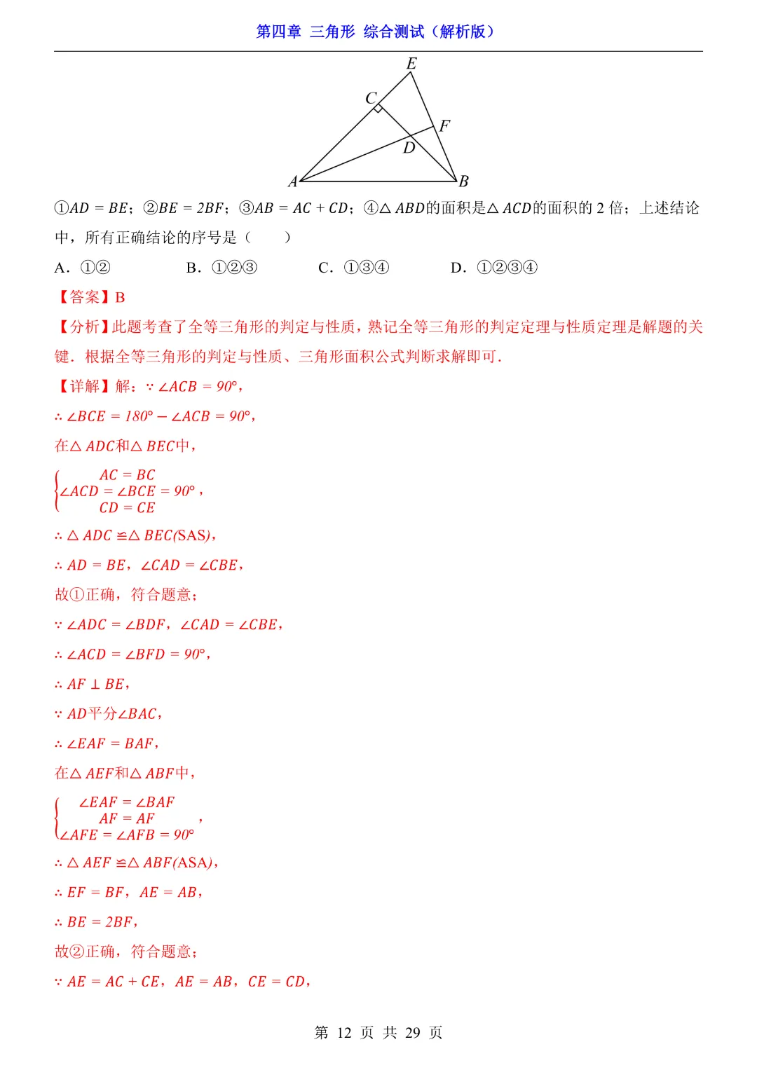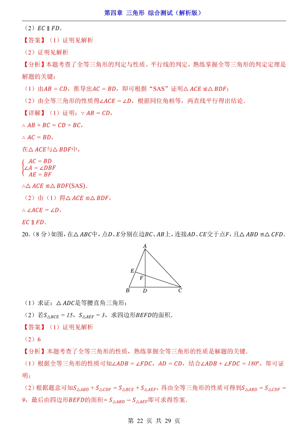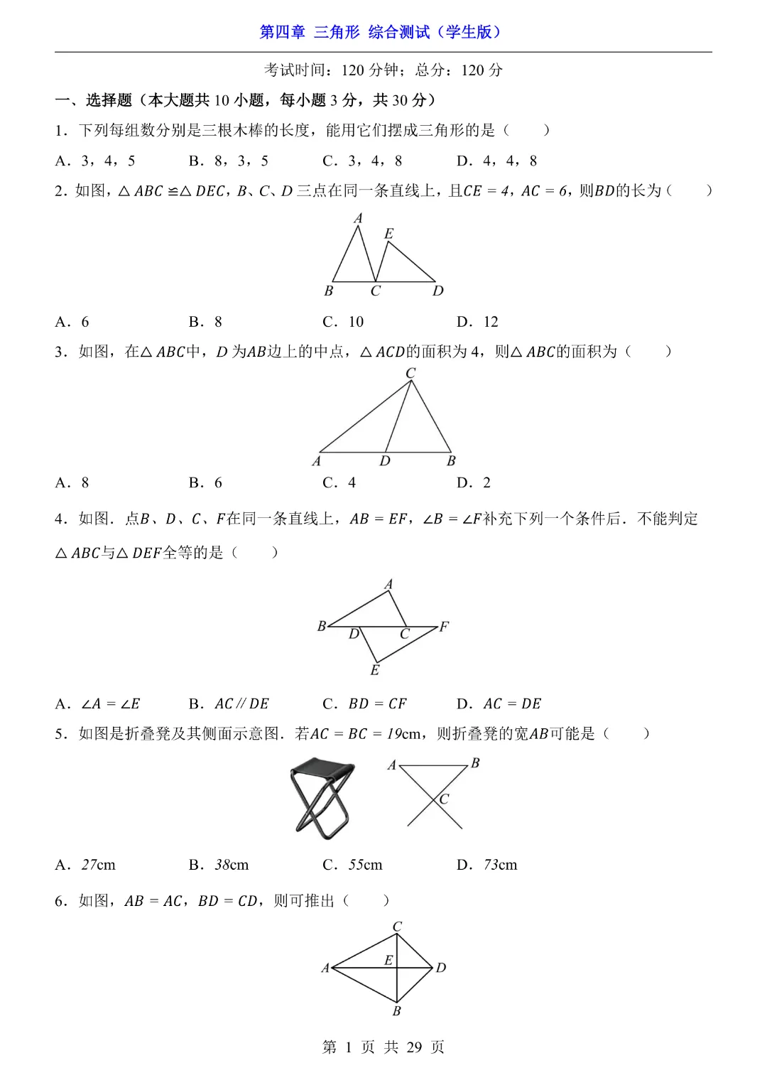 今天给大家分享的是:【七年级下册数学北师大版】初一下册数学《第4章三角形 综合测试》(学生版+解析版),完整电子版可打印