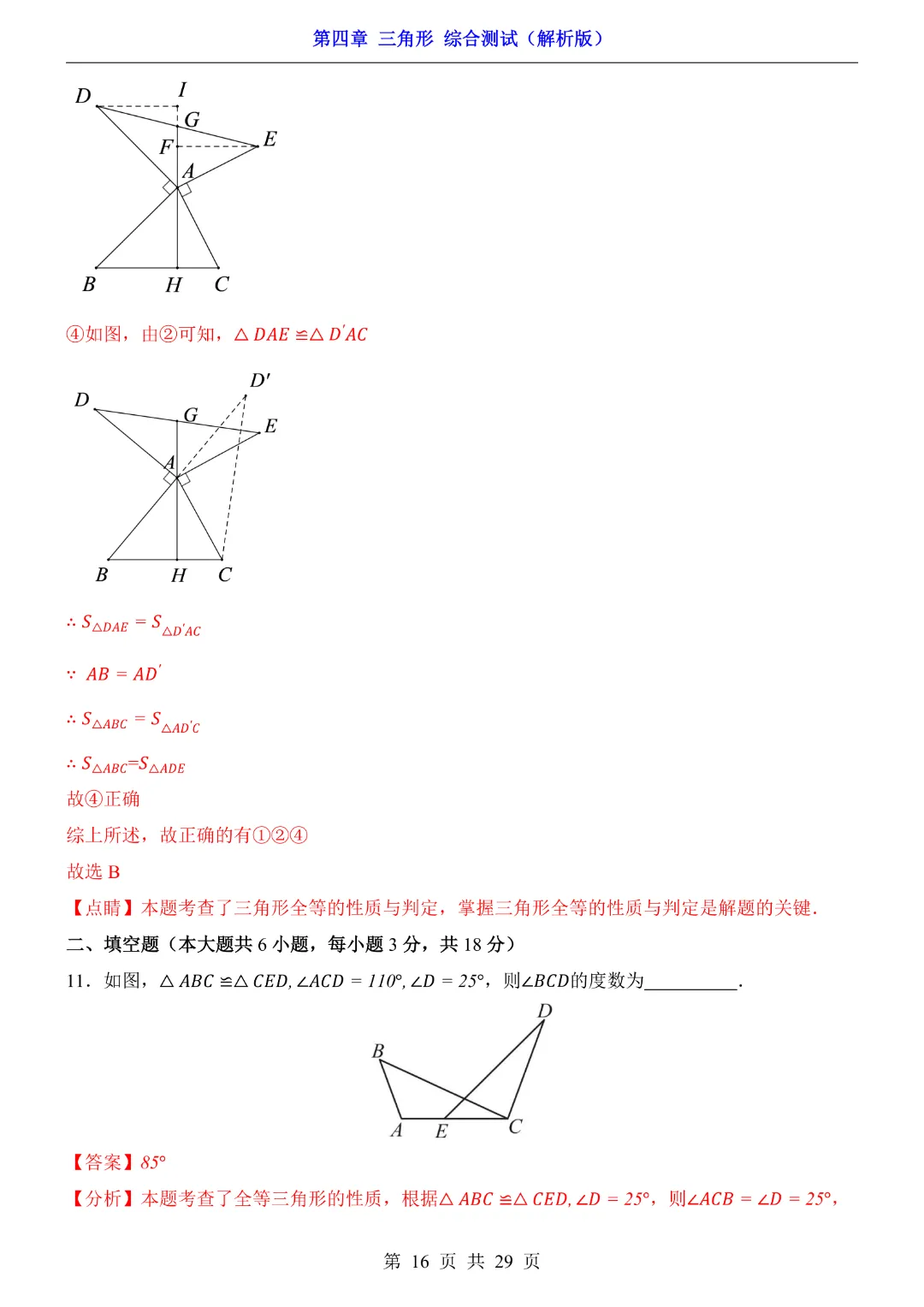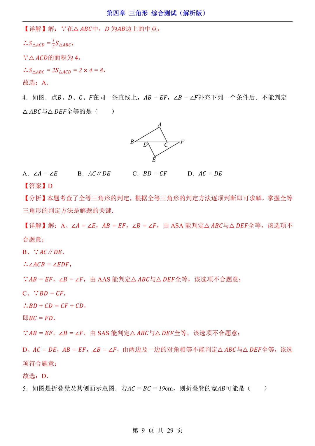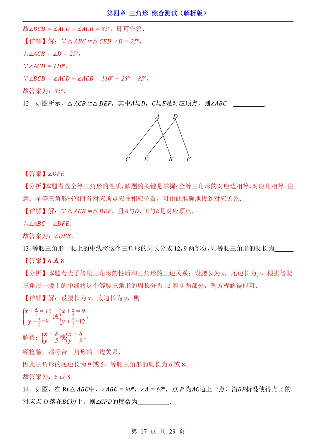 今天给大家分享的是:【七年级下册数学北师大版】初一下册数学《第4章三角形 综合测试》(学生版+解析版),完整电子版可打印