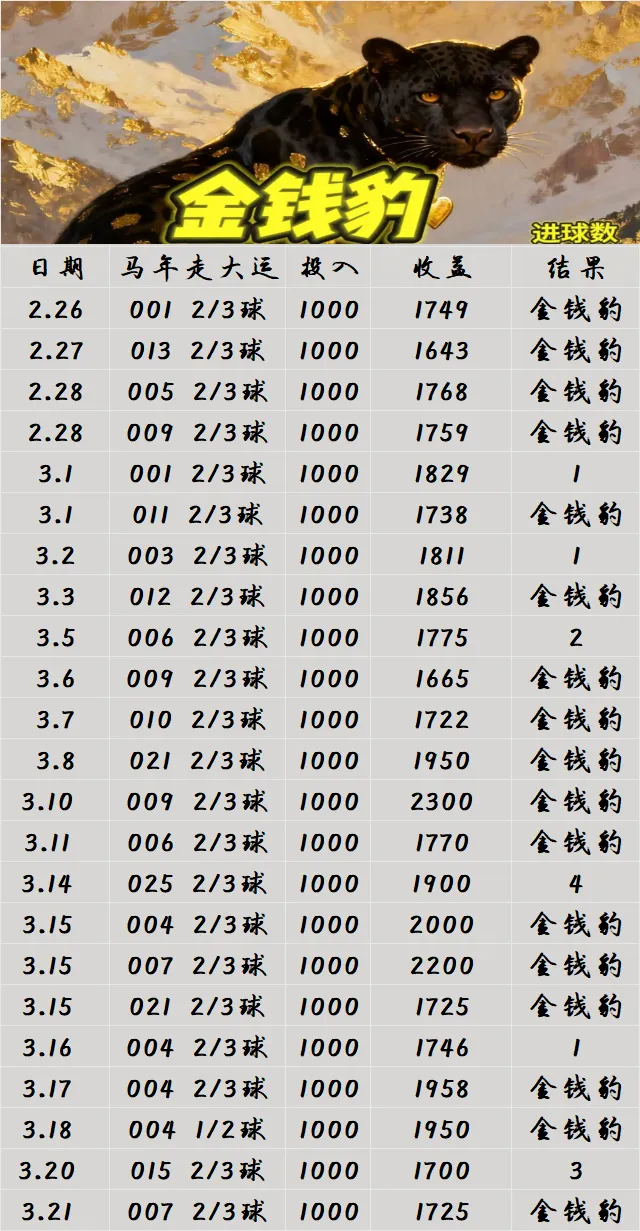 3月21日今日足球进球数推荐合集, 金钱豹进球数