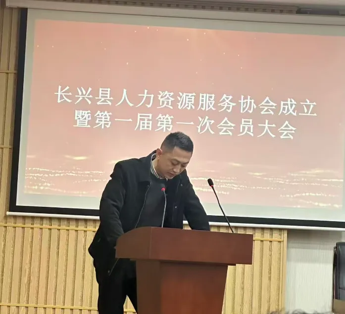 县就业服务和劳动保障中心主任张勇在成立大会上致辞。他表示,长兴县人力资源协会的成立既是我县高度重视人力资源服务行业并取得快速发展的见证,也标志着我县人力资源服务行业进入了一个崭新的发展阶段。我县正处在高质量发展的关键时期,人力资源服务行业的专业化和规范化,对于优化营商环境、促进人才集聚、保障企业用工具有不可替代的作用。他希望协会和各位企业家敏锐把握行业发展“窗口期”,积极发挥连接政府、市场与劳动者的纽带作用,为我县县域经济社会高质量发展作出更大的贡献。