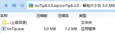这款软件体积很小,对系统资源的占用也微乎其微,大家完全可以放心使用,提升自己的工作效率。下载imTip压缩包后,解压到合适的文件夹,只有一个文件imTip.exe,双击运行。