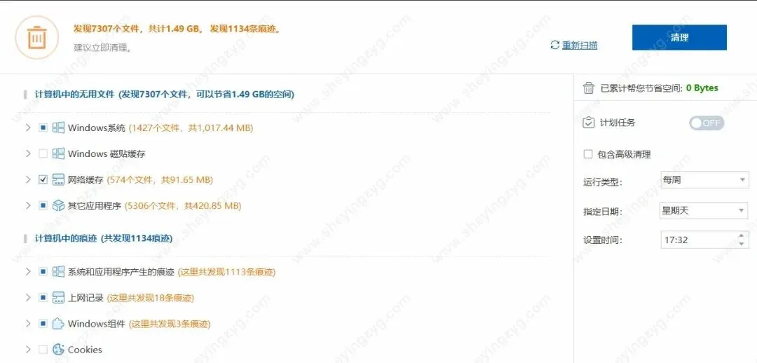 常规清理:此功能能够有效清除系统垃圾,像系统缓存、网络缓存这类占据磁盘空间的 “隐形杀手”,以及上网留下的痕迹,都能被一扫而光,从而释放出更多的磁盘空间。