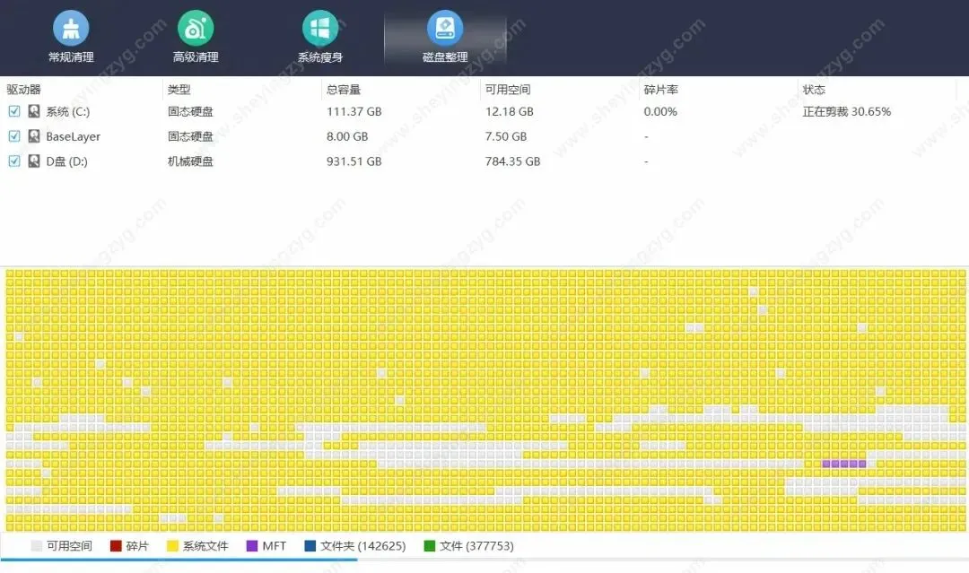 磁盘整理:通过对磁盘内文件的整理优化,提升磁盘的读写性能,提升电脑运行速度。