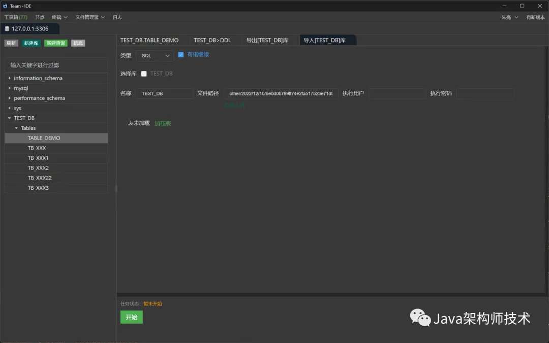 # 安装依赖go mod tidy# 前端文件发布到服务中# 将自动将前端文件打包成到internal/static/html.go文件中go test-v-timeout 3600s -run ^TestStatic$ teamide/internal/static单机版可执行文件打包,单机版运行需要谷歌浏览器