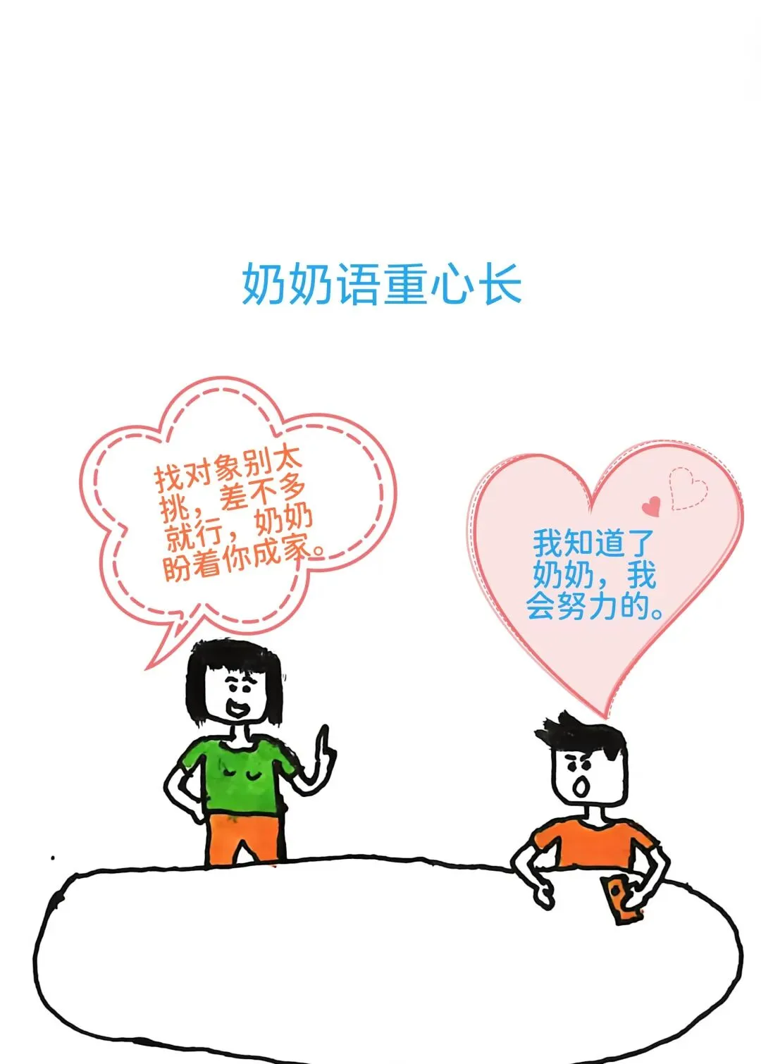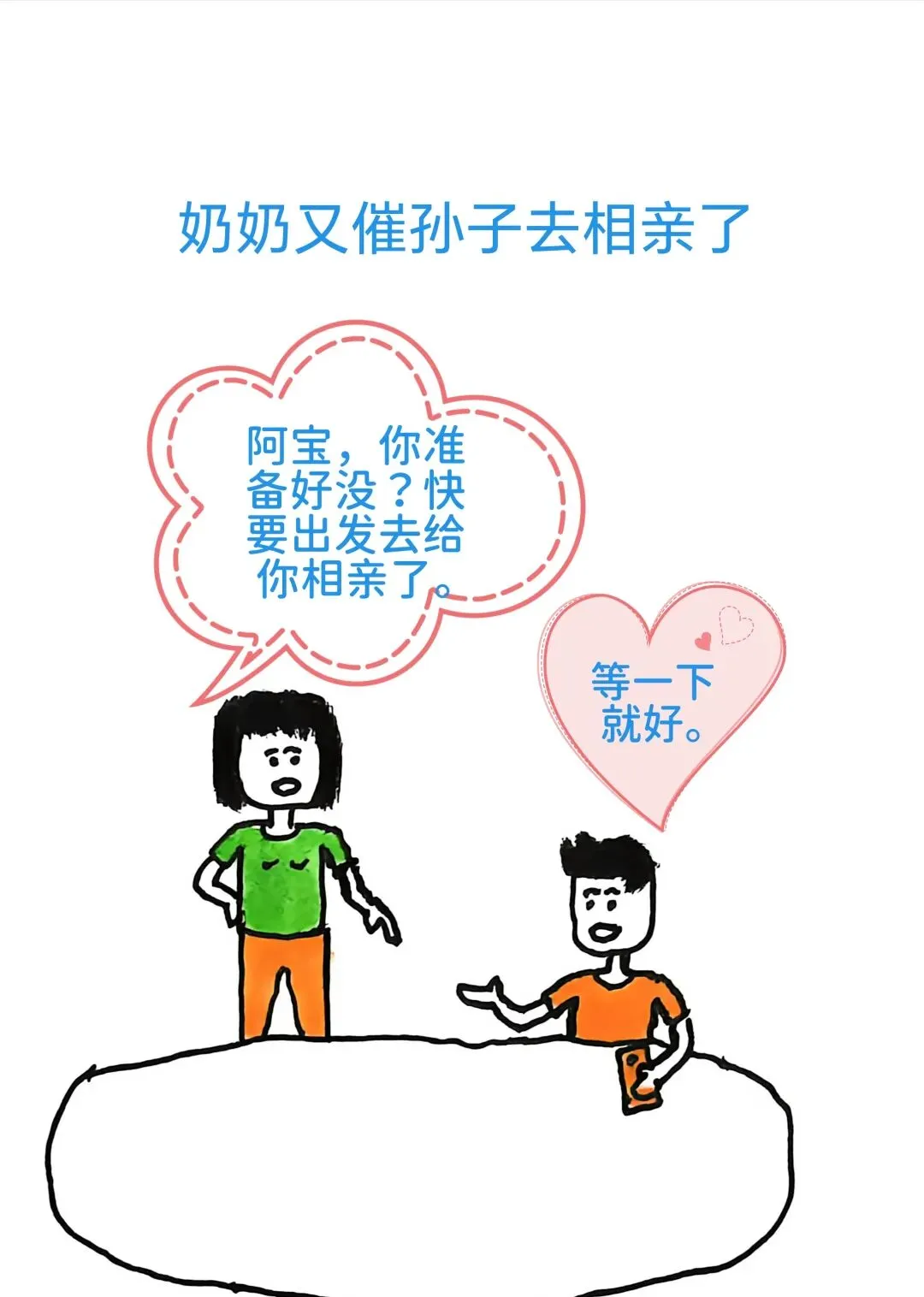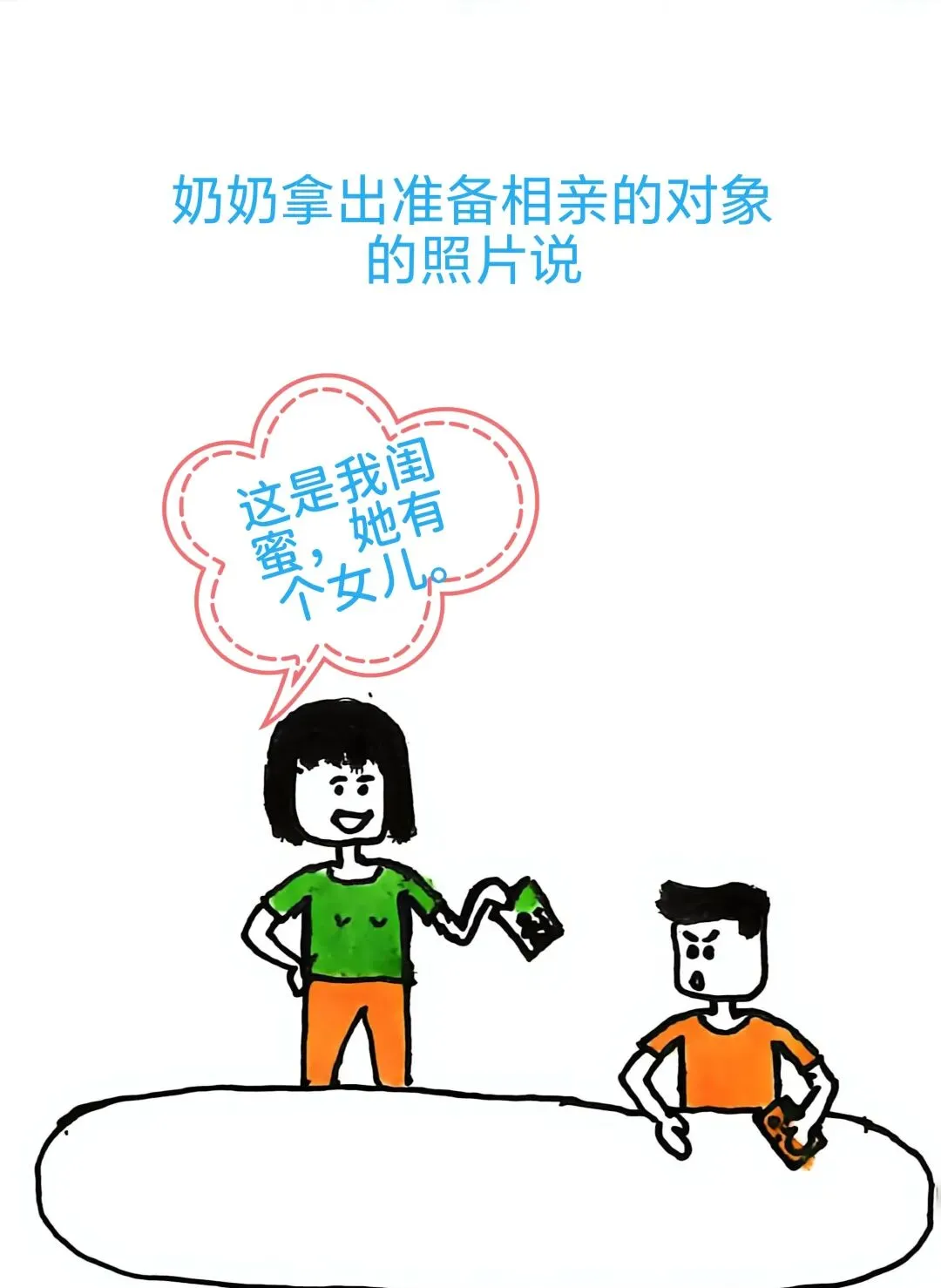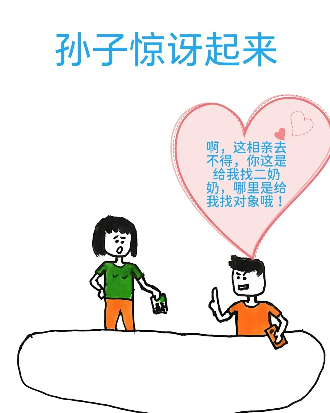 搞笑漫画:奶奶来催孙子相亲:找对象别太挑,差不多就行.孙子:我知道了.奶奶:这是我闺蜜,她有个女儿.孙子:啊,这相亲我去不得!