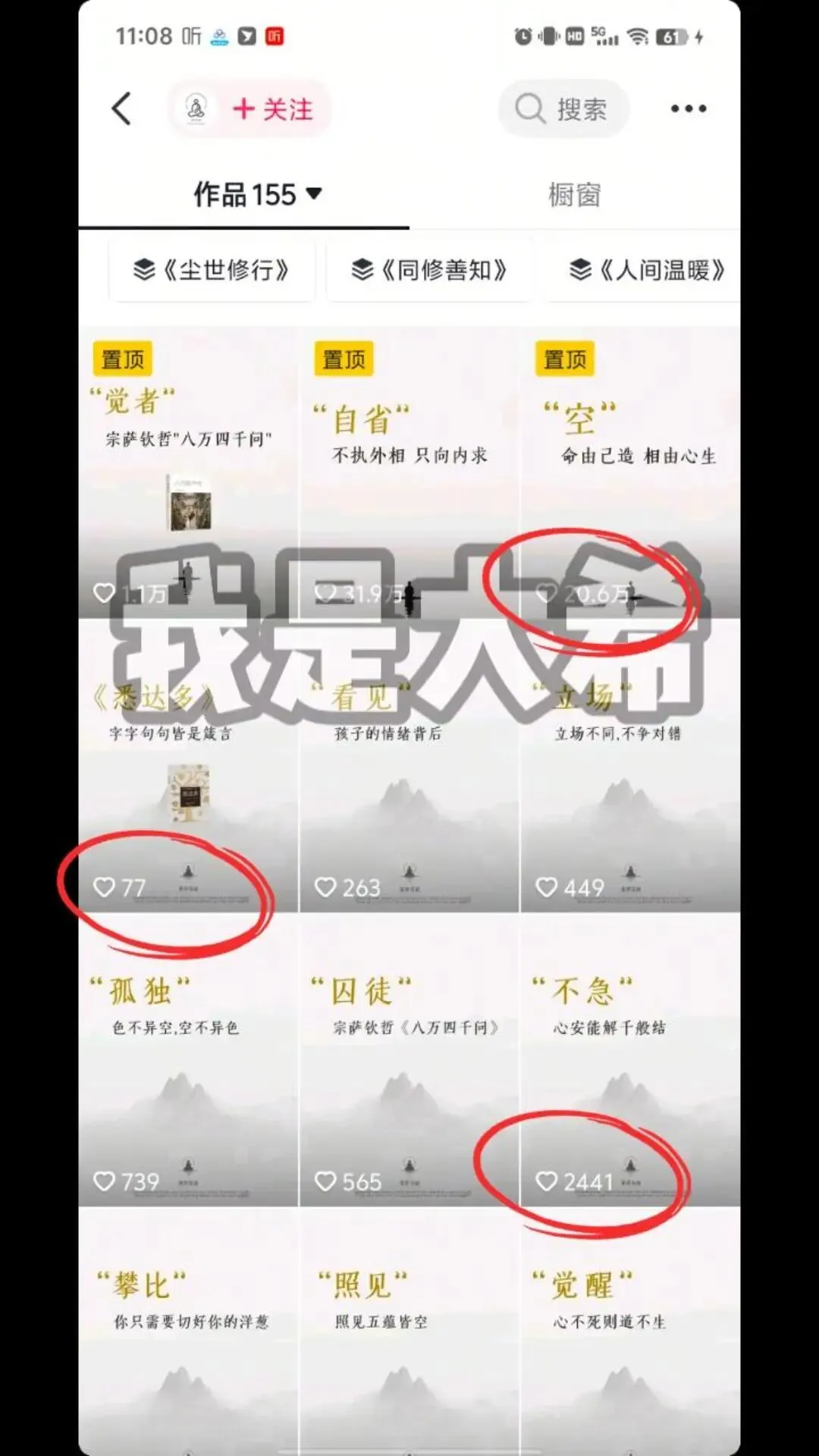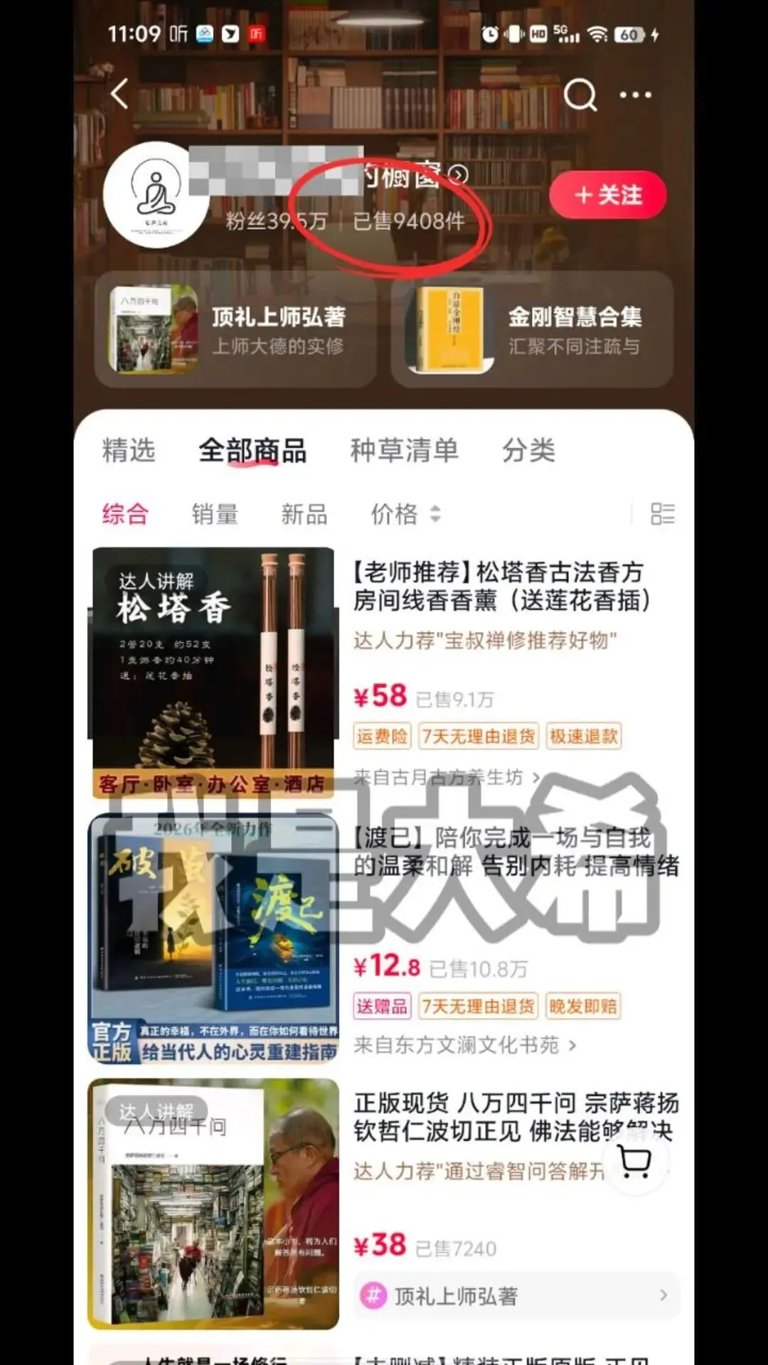 这个账号的所有视频也是用AI数字人软件生成的,发布的视频有几十、几千、几万的点赞,视频对应的播放量在几十万到几百万之间,现在的AI是未来的趋势,平台完全不会对AI软件生成的视频进行限流。到目前为止该账户的店铺橱窗一共卖了9408单,售卖的产品有养生产品,养生书、国学书籍等。粗略估算该账户至少变现了10万以上。