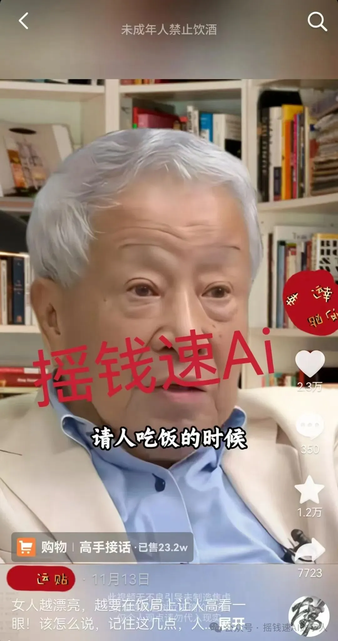 8、国学赛道:用AI数字人批量生成视频,通过卖相关书籍变现,实现了一个赛道三种收益模式(创作者分成计划、广告收益、橱窗带货收益),或者把公域流量引流到私域,转化客户赚钱。