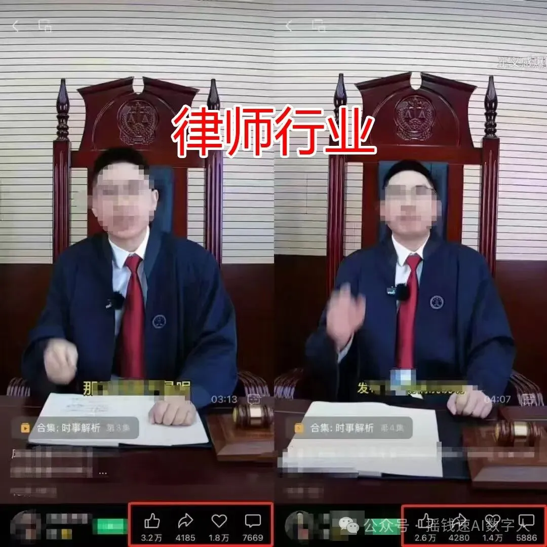 5、律师行业:用AI数字人批量生成跟律师行业相关的视频,把公域流量引流到私域,转化客户赚钱。