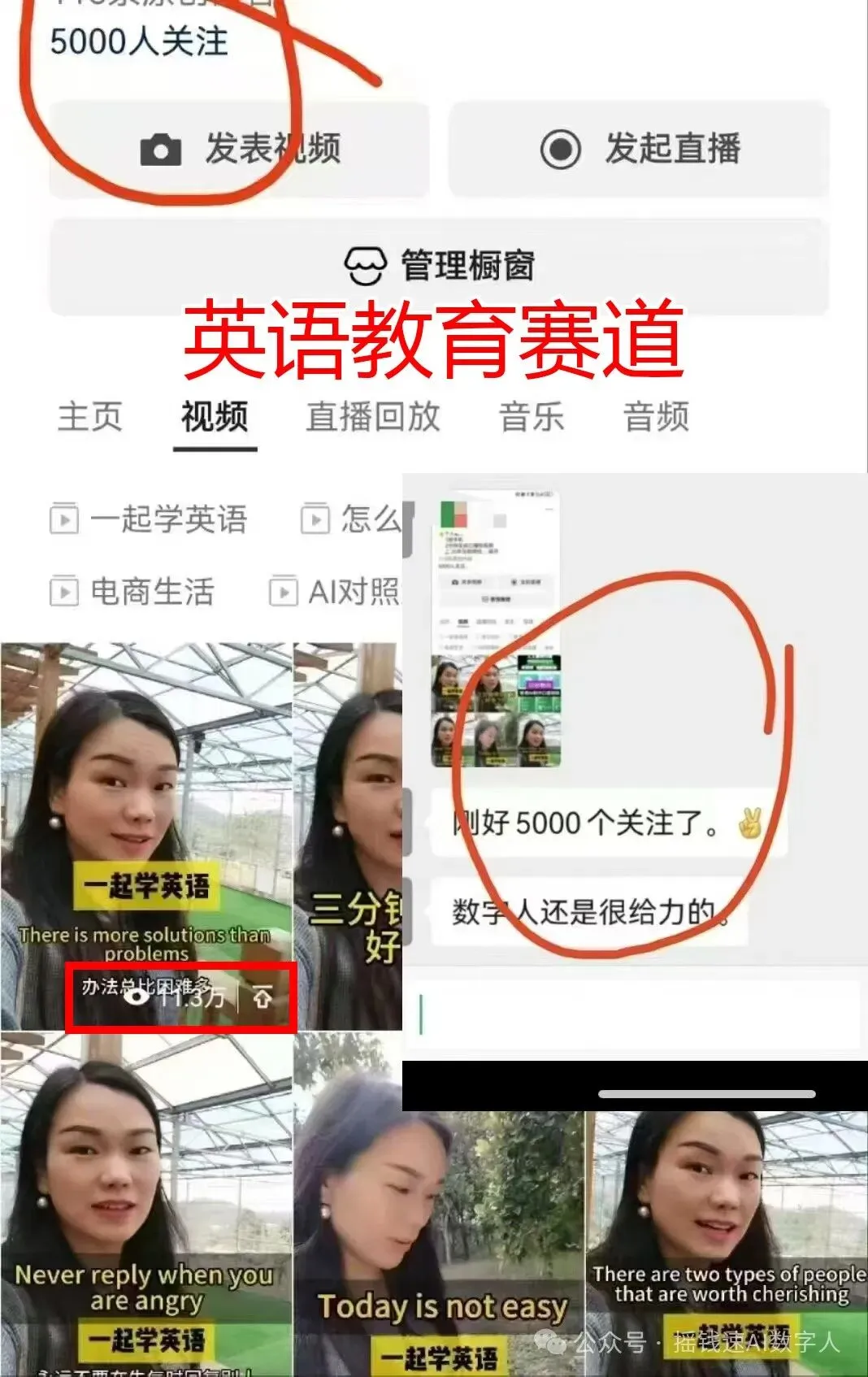 4、教育行业:用AI数字人批量生成跟教育行业相关的视频,把公域流量引流到私域,转化客户赚钱。